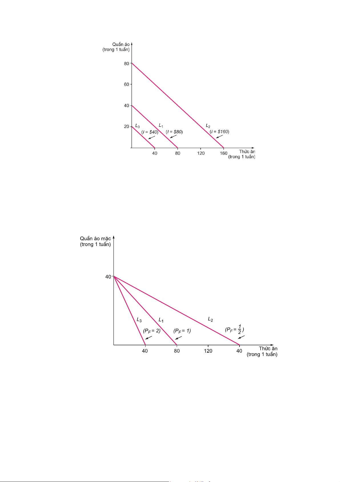 đường ngân sách dịch chuyển sang vị trí L2. Nếu ngân sách giảm xuống 40$, thì