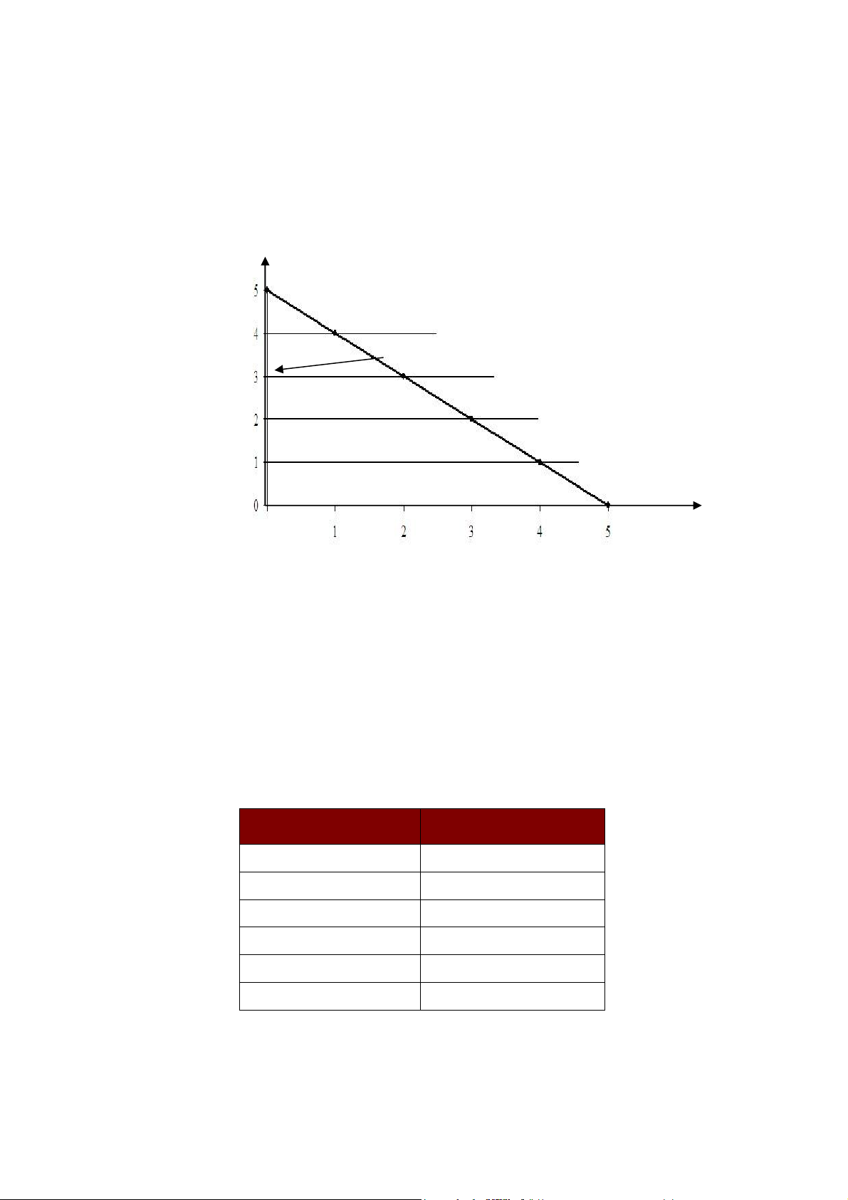 đường ngân sách của bảng trên. Các điểm A,B, D, E, G nằm trên đường ngân sách. Từ
