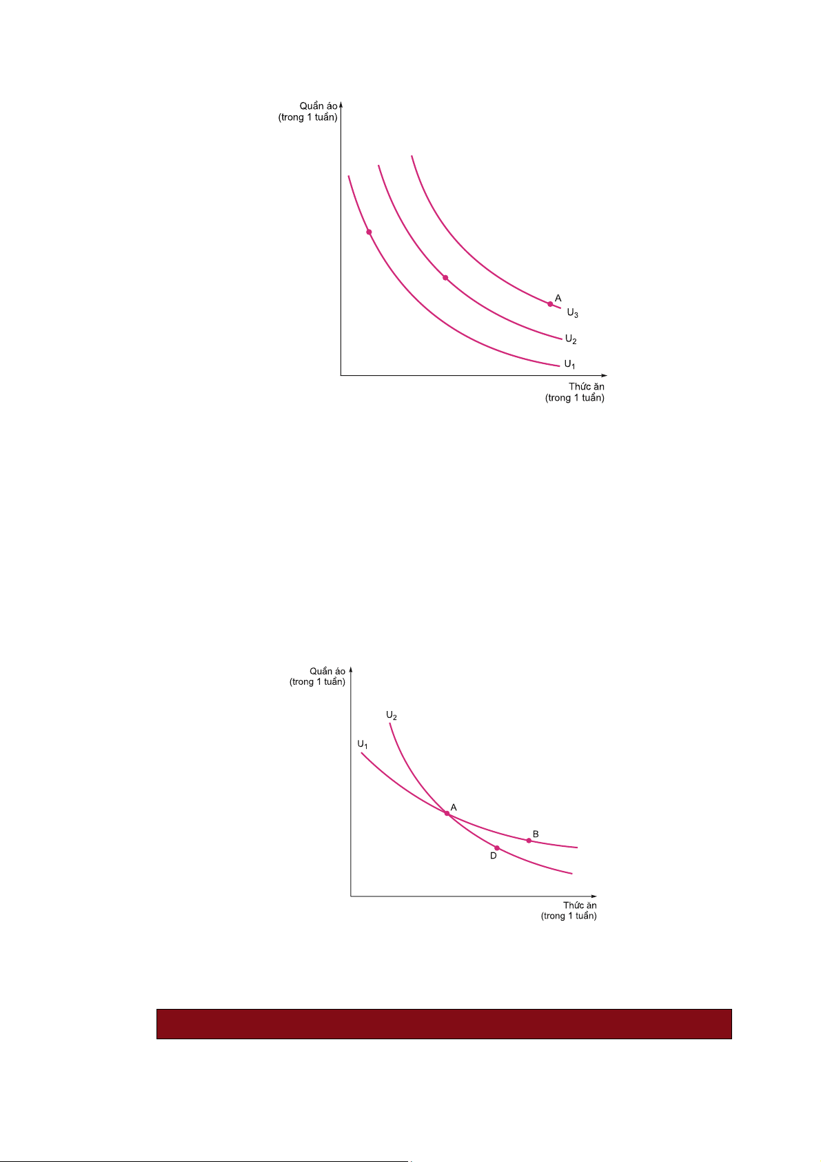 A tới B, người tiêu dùng dành ít tiền cho việc mua quần áo hơn và nhiều tiền mua thực