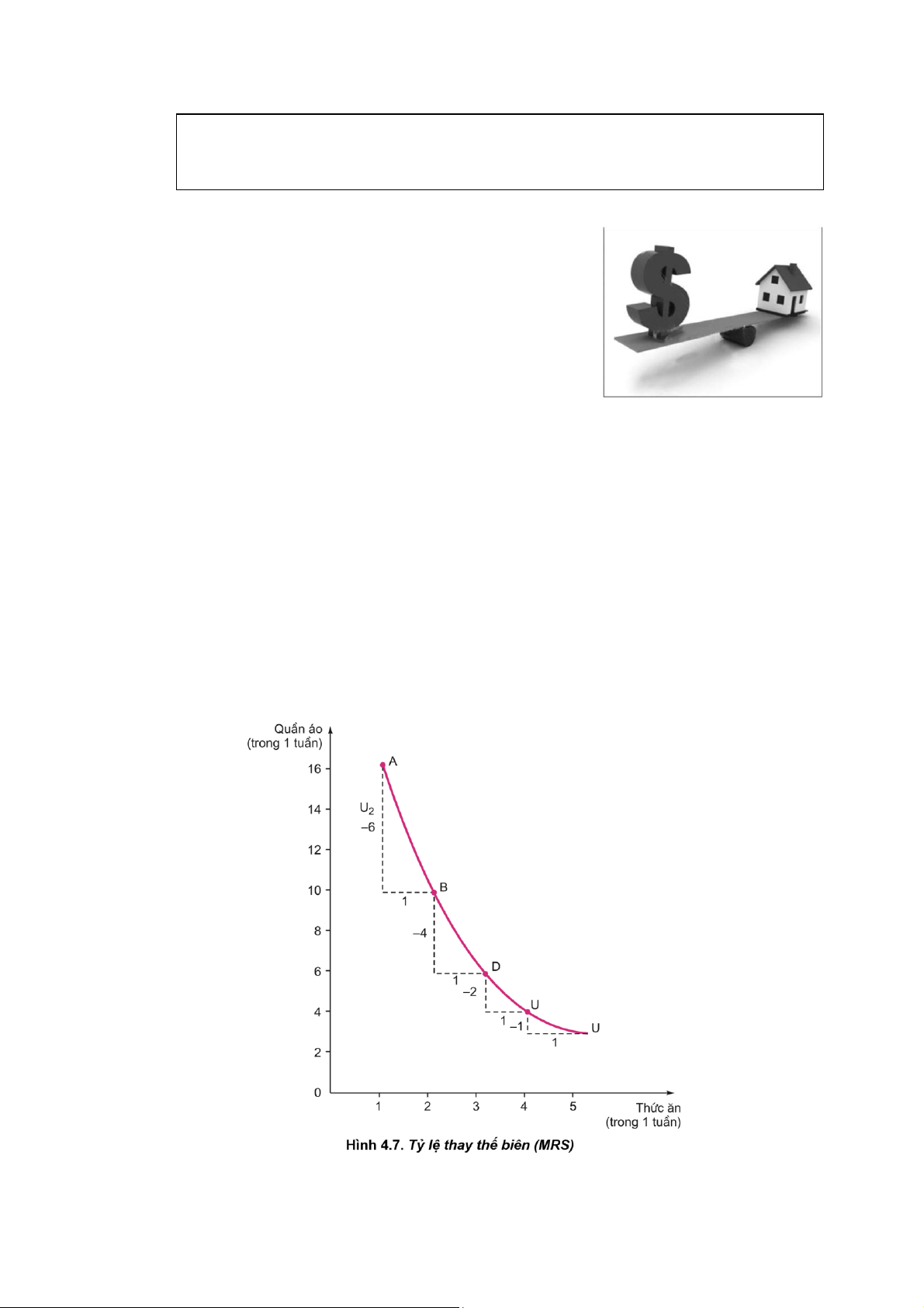 hơn để lấy một đơn vị của thực phẩm ($1/$2 = 1/2). Trên đồ thị 4.8, ta thấy độ dốc của