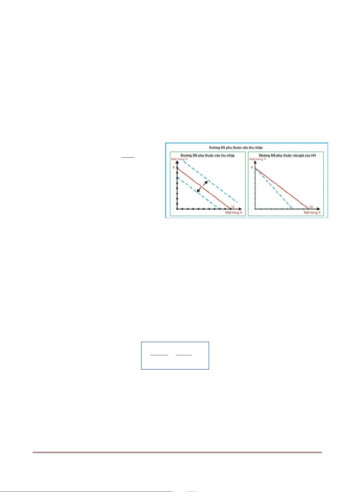 - Thay đổi về thu nhập làm dịch chuyển đường ngân sách nhưng độ dốc của đường ngân sách không thay đổi.