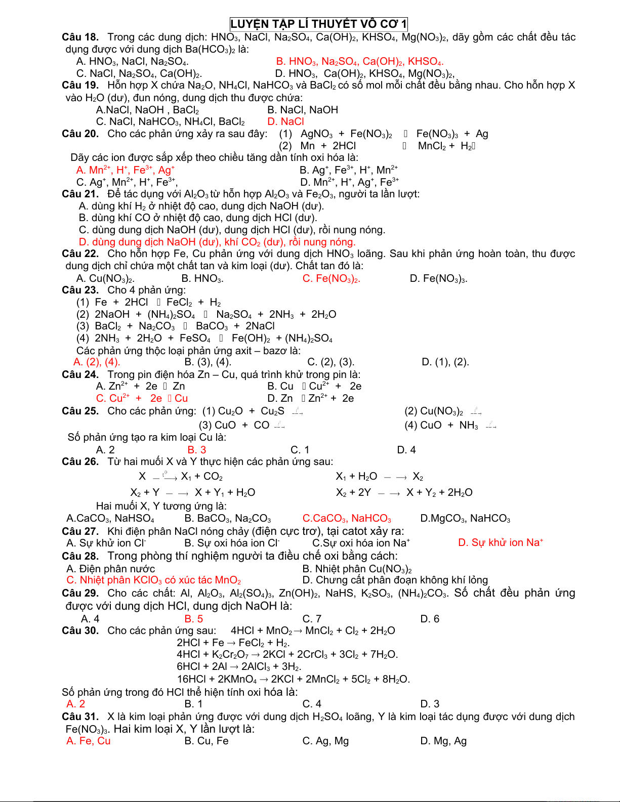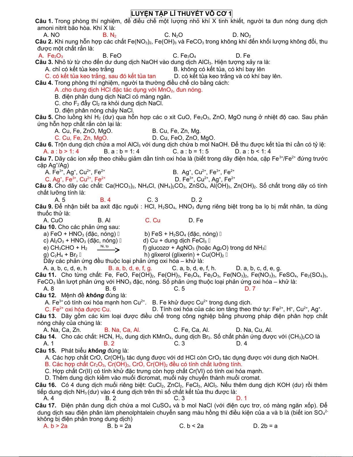 LUYỆN TẬP LÍ THUYẾT VÔ CƠ 1