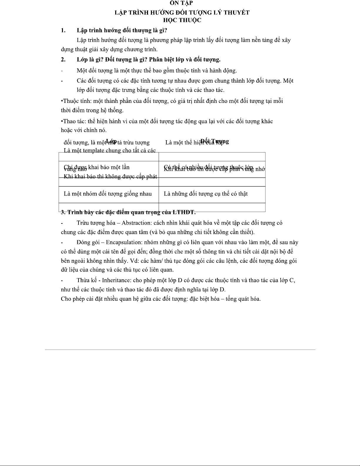 Lý thuyết Lập trình Hướng Đối Tượng (OOP) - Ôn Tập Chi Tiết