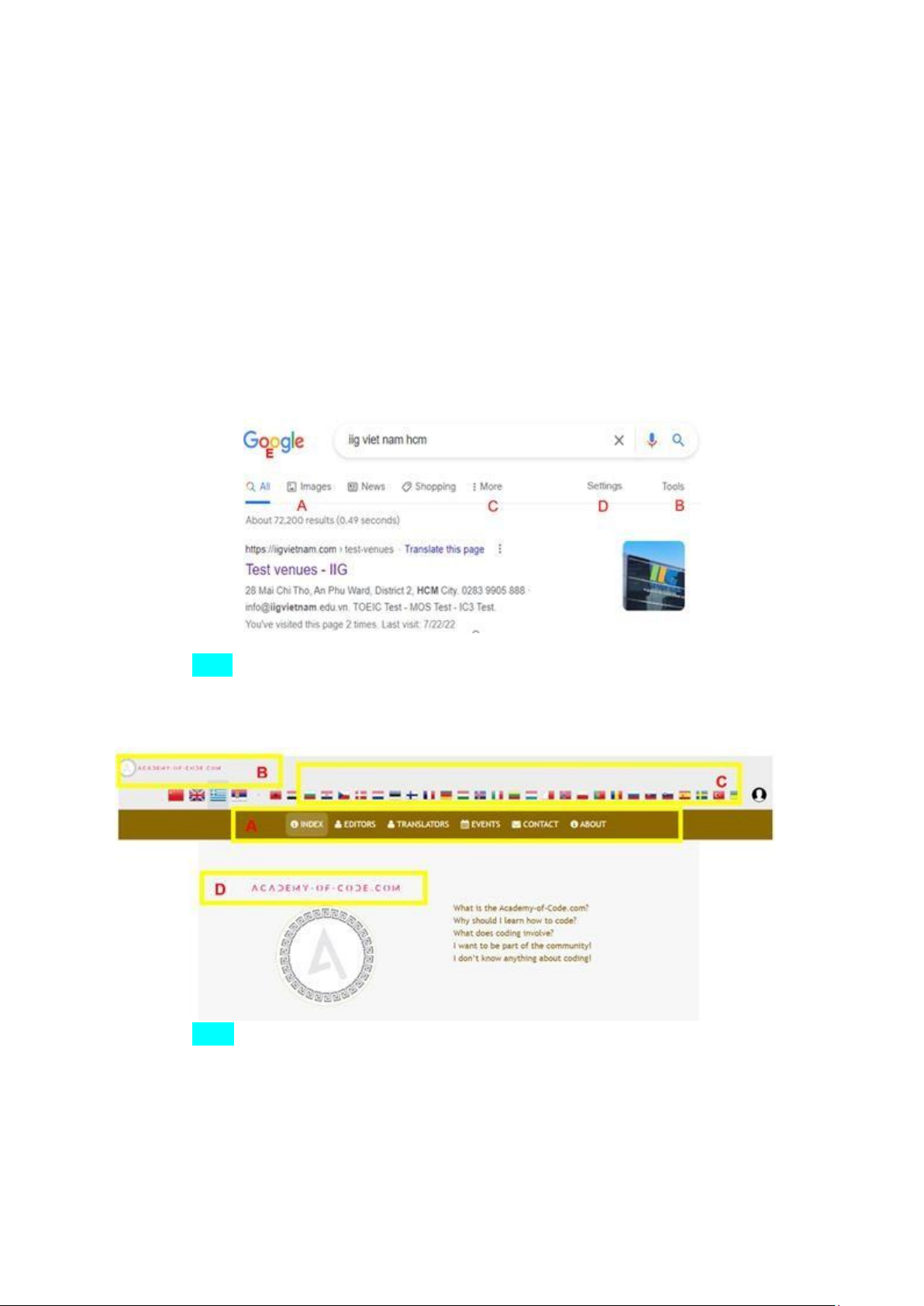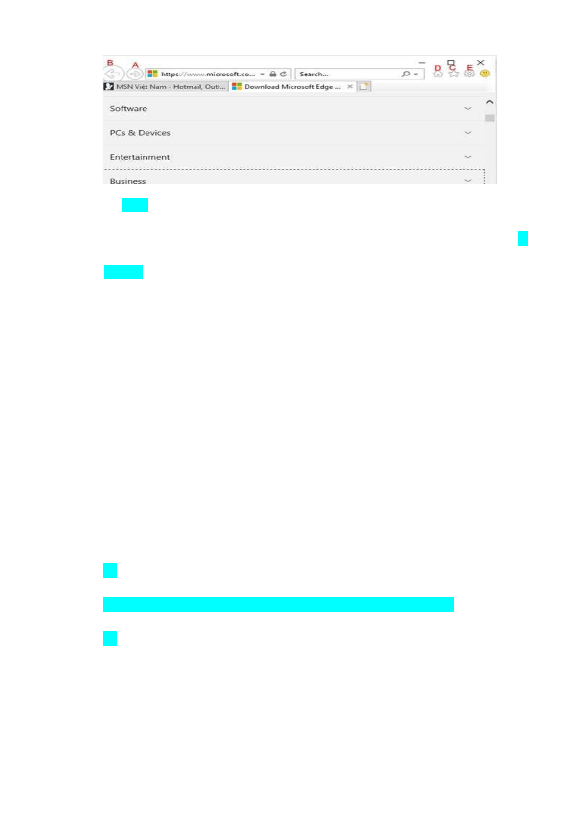 Câu 36. Nơi nào bạn nhấp ể truy cập trang chủ (Home page)? lOMoAR cPSD| 58797173 D