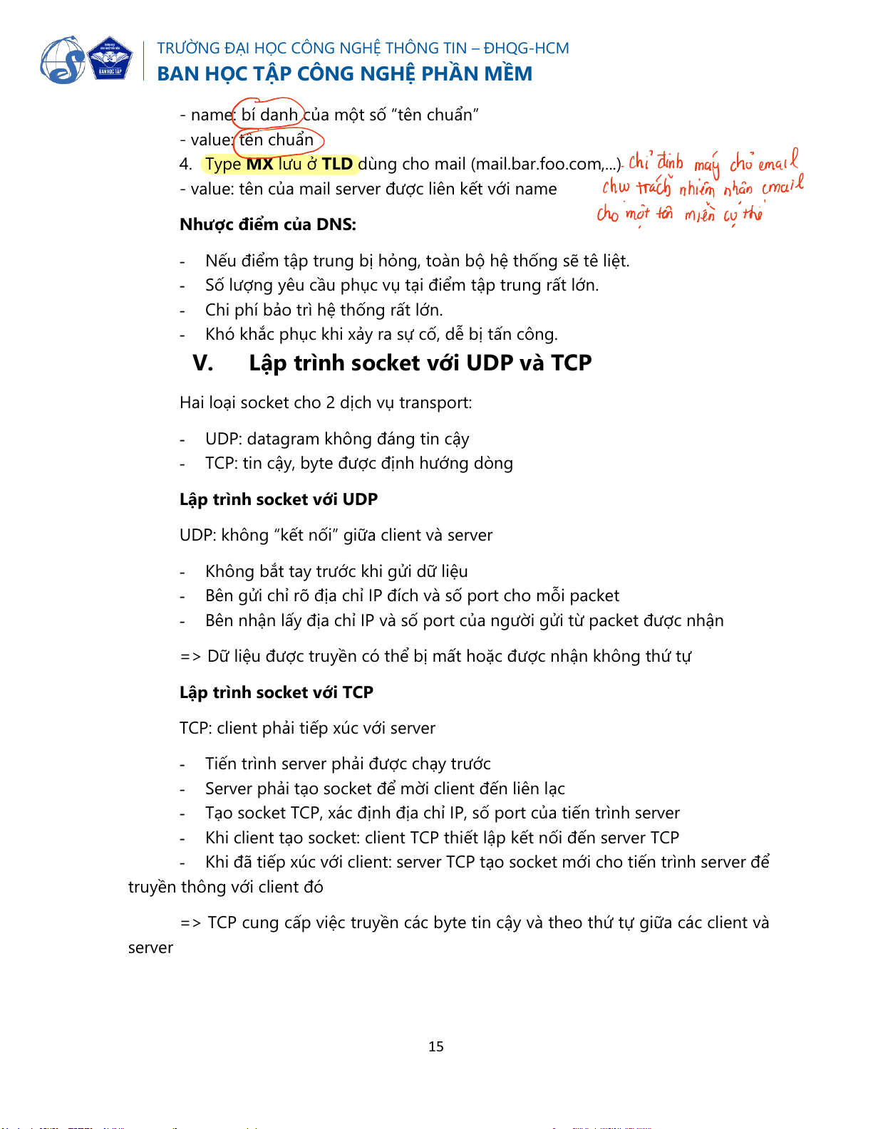 => TCP cung cấp việc truyền các byte tin cậy và theo thứ tự giữa các client và server 15