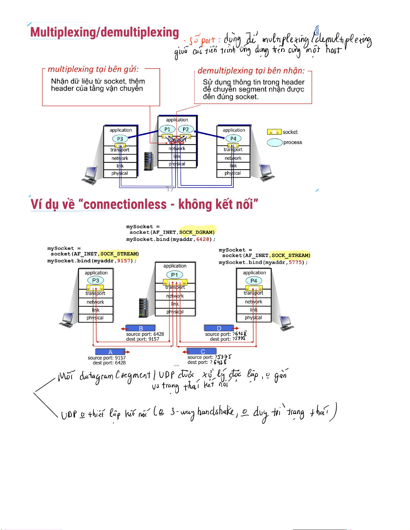 − Host dùng các địa chỉ IP và số port để gởi segment đến socket thích hợp
