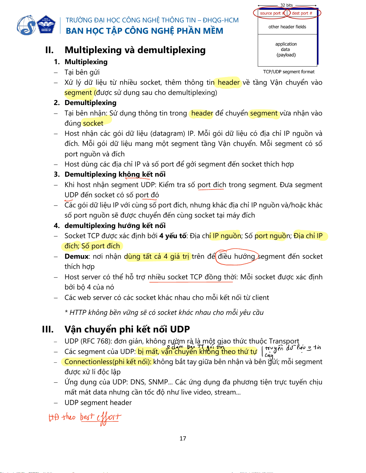 − Tại bên nhận: Sử dụng thông tin trong header để chuyển segment vừa nhận vào đúng socket
