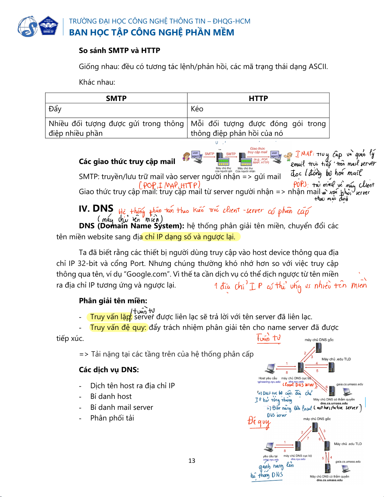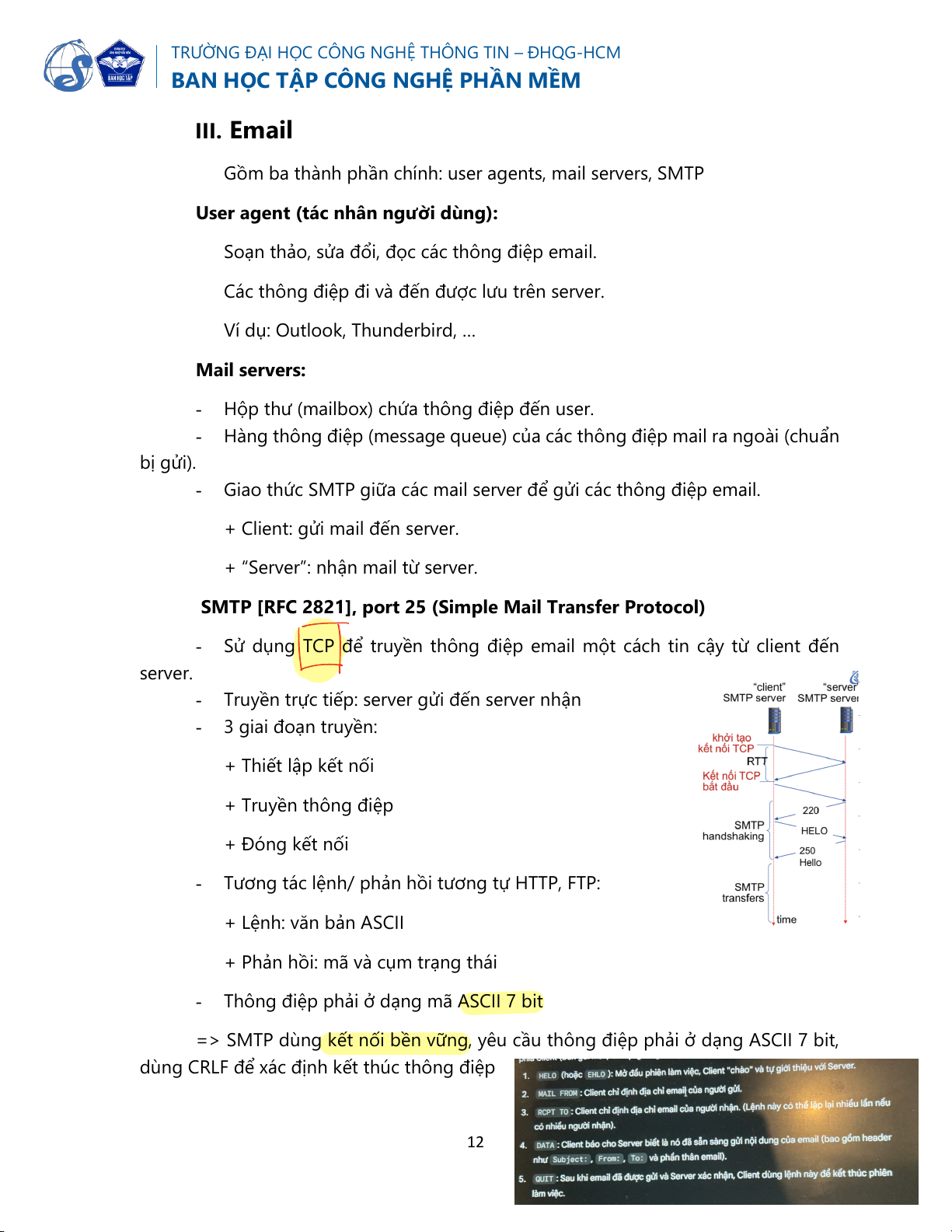 SMTP: truyền/lưu trữ mail vào server người nhận => gửi mail