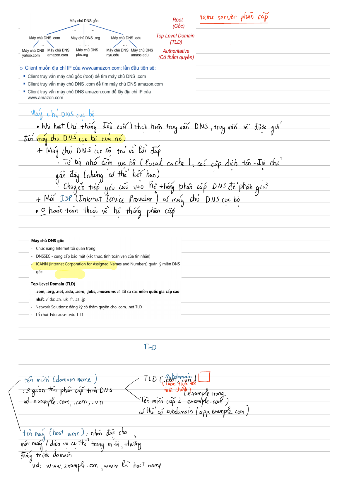 - Khi một host tạo một truy vấn DNS, truy vấn sẽ được gởi đến DNS server cục bộ của nó.