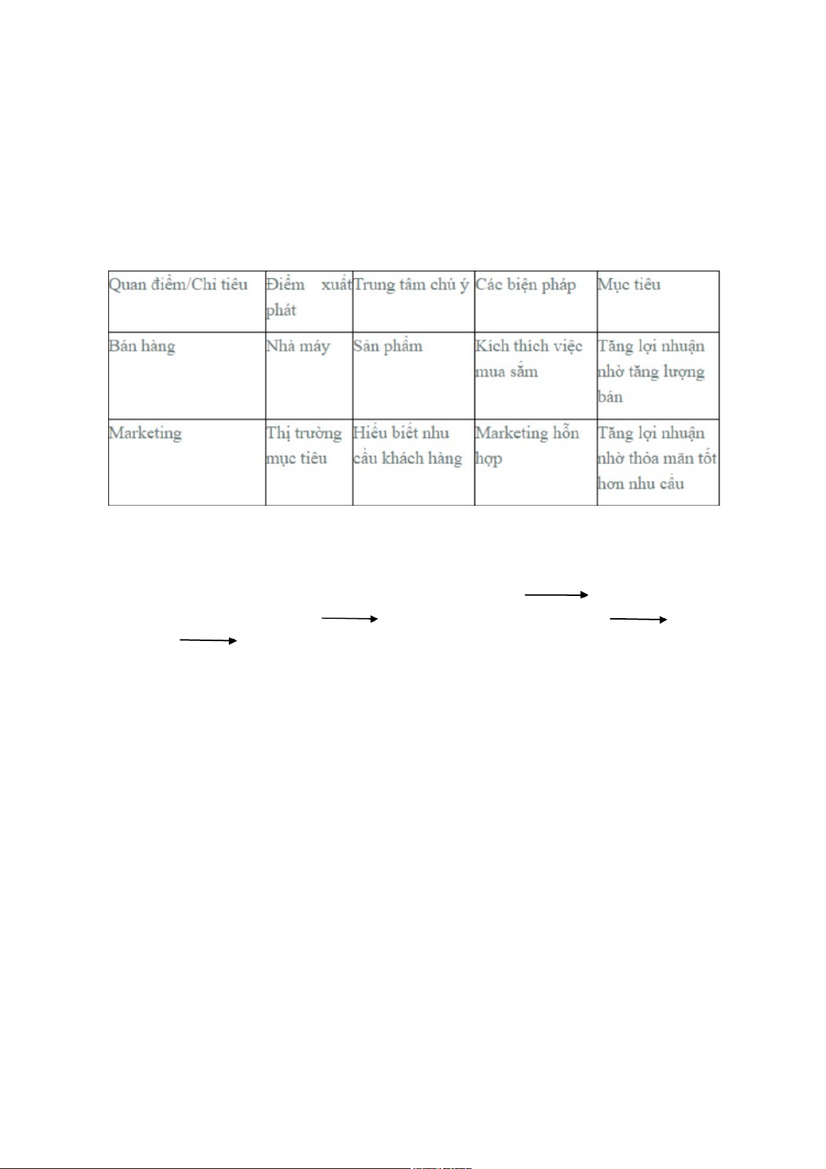 - So sánh quan điểm bán hàng và quan điểm marketing: