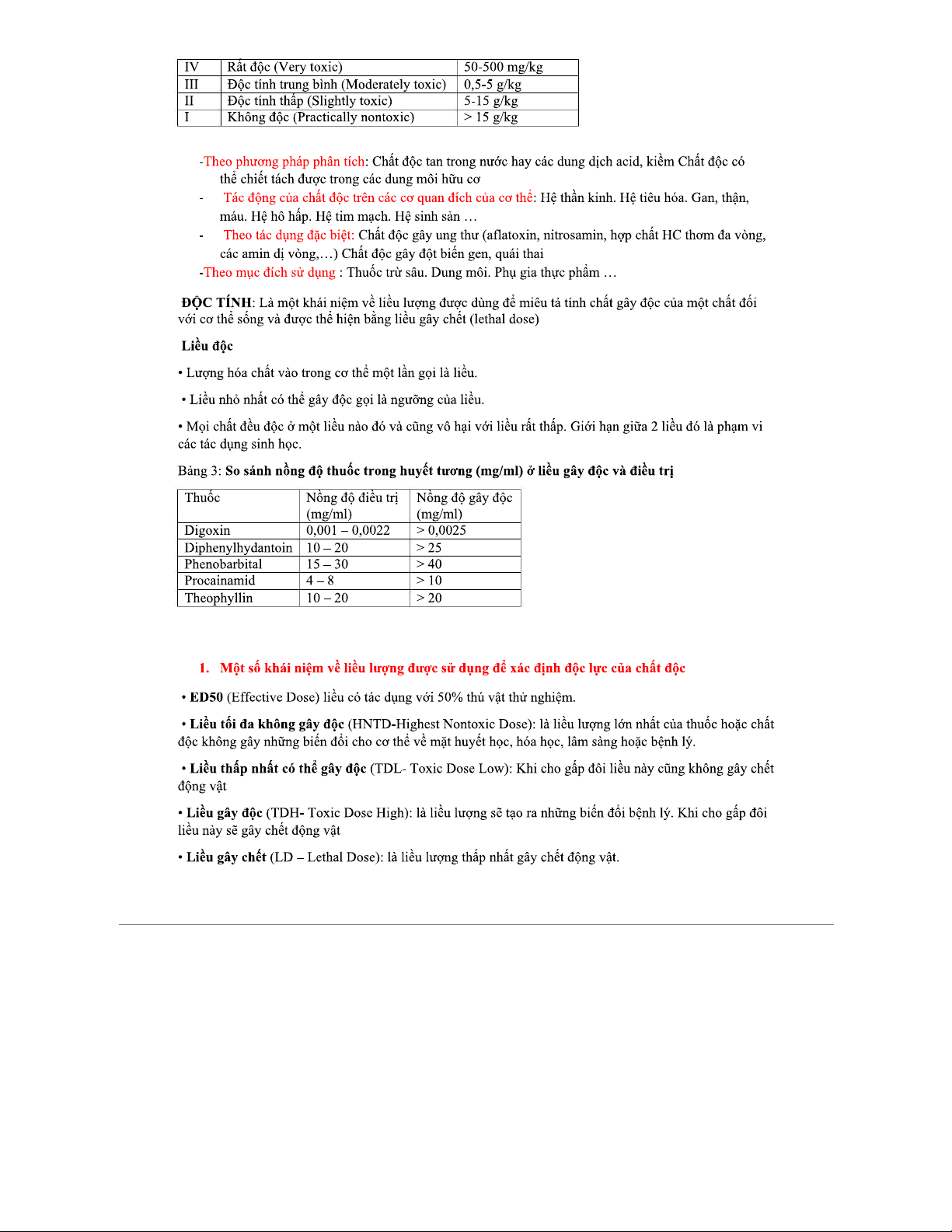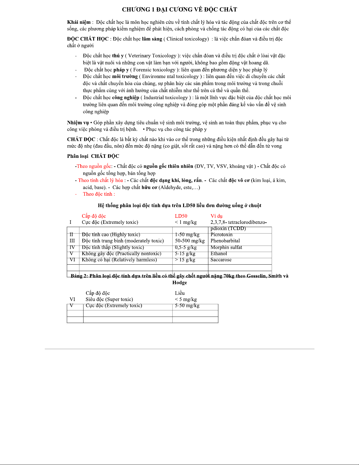 LÝ THUYẾT MÔN ĐỘC CHẤT - CHƯƠNG 1: ĐẠI CƯƠNG VỀ ĐỘC CHẤT