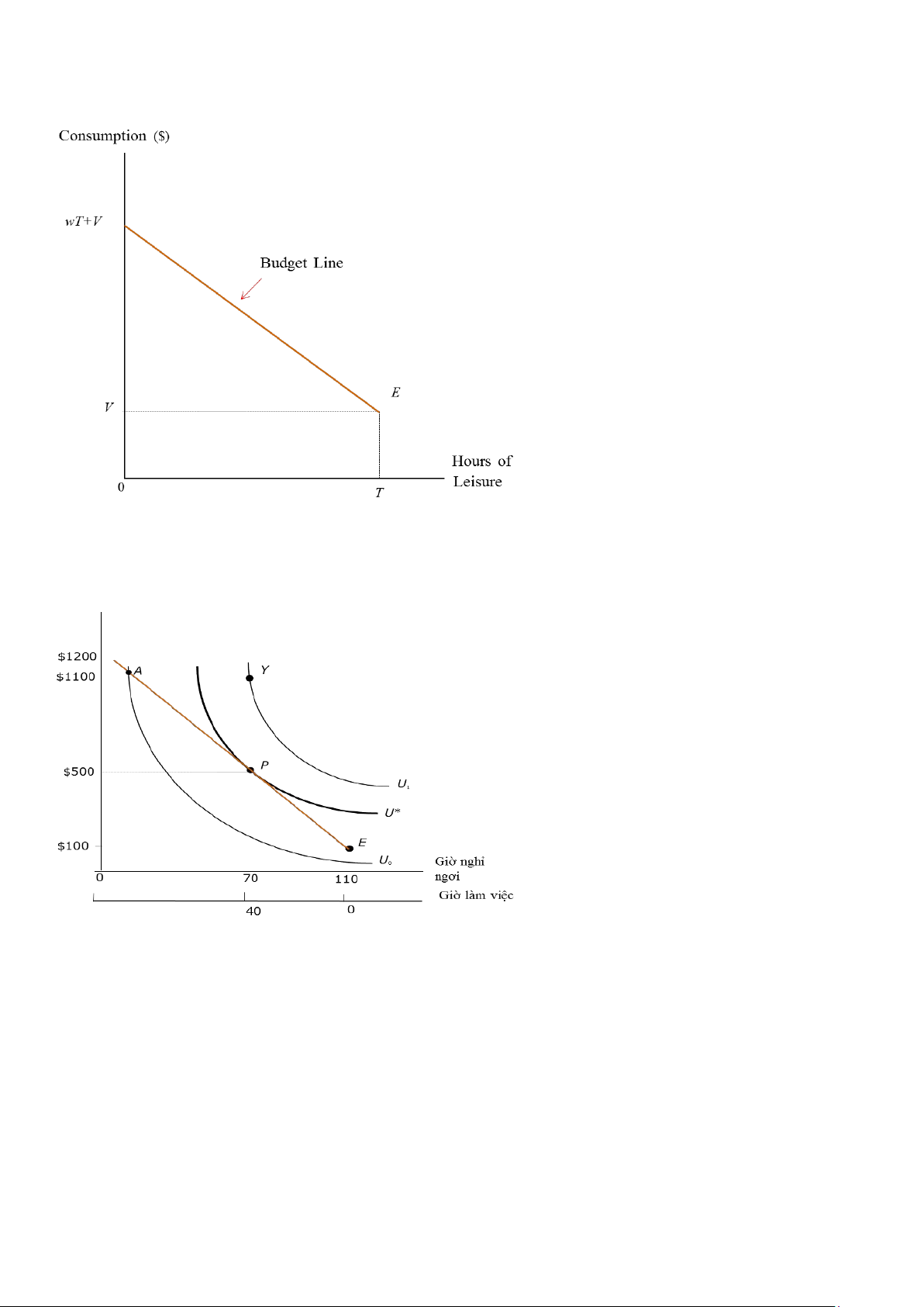 Nghỉ ngơi là hàng hóa thông thường, khi V tăng thì số giờ làm việc giảm (tăng giải trí). lOMoAR cPSD| 61260386
