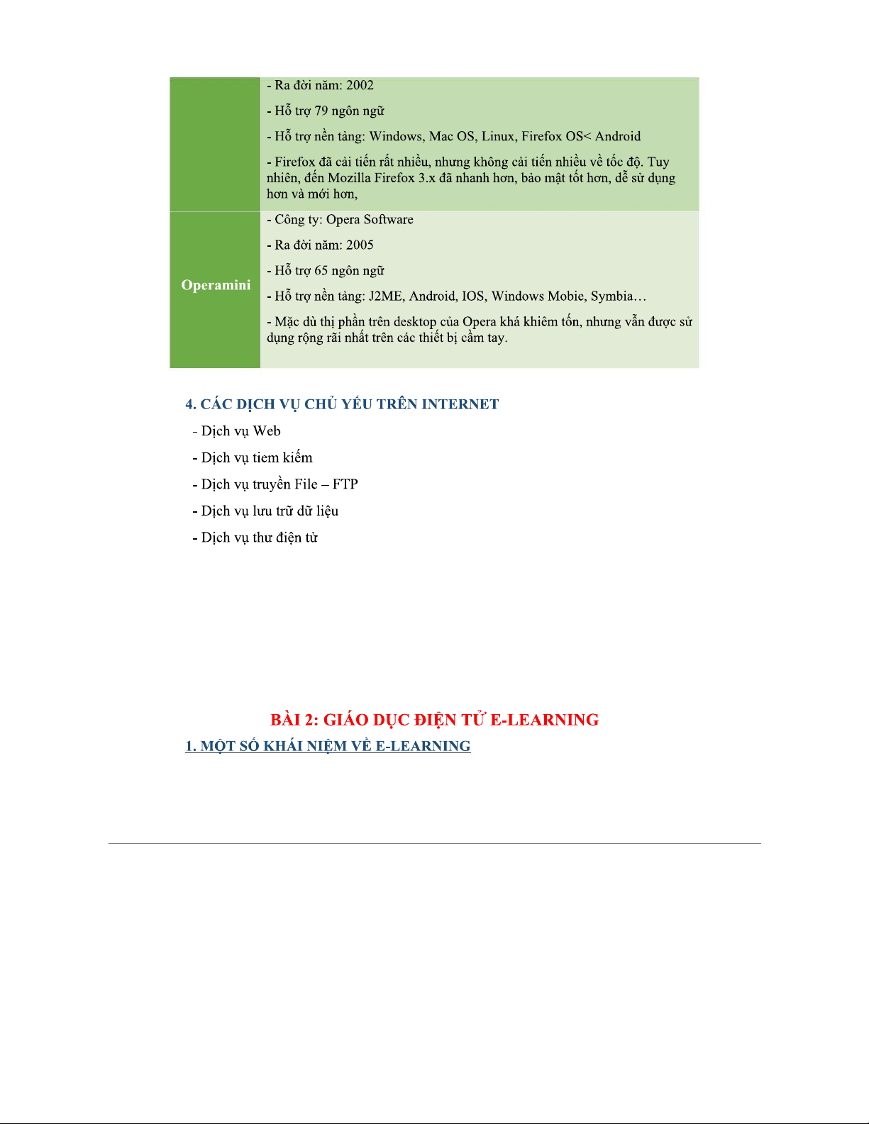 Lý thuyết Nhập môn E-learning (Môn E-learning: Tổng quan Internet và Nội dung)