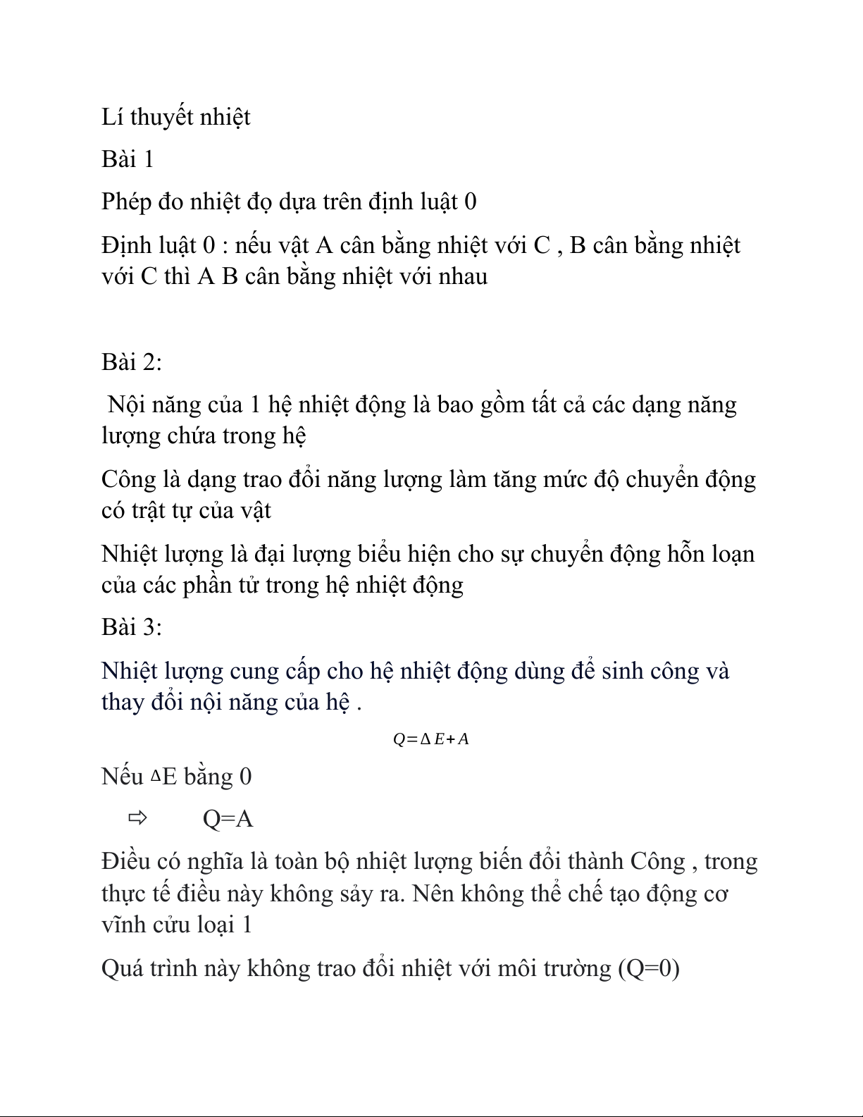 Q=∆ E+ A Nếu ∆E bằng 0 Q=A