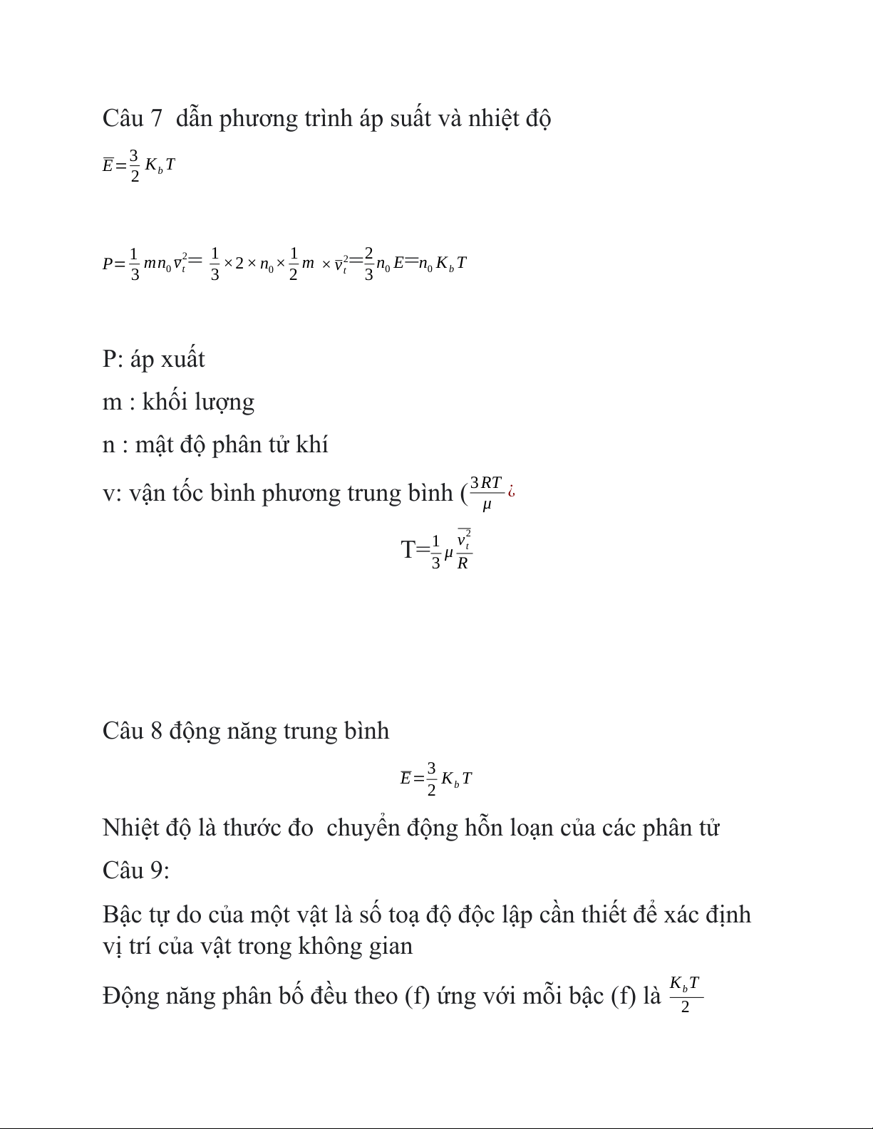 Câu 7 dẫn phương trình áp suất và nhiệt độ 3 E= K T 2 b 1 2 1 P=