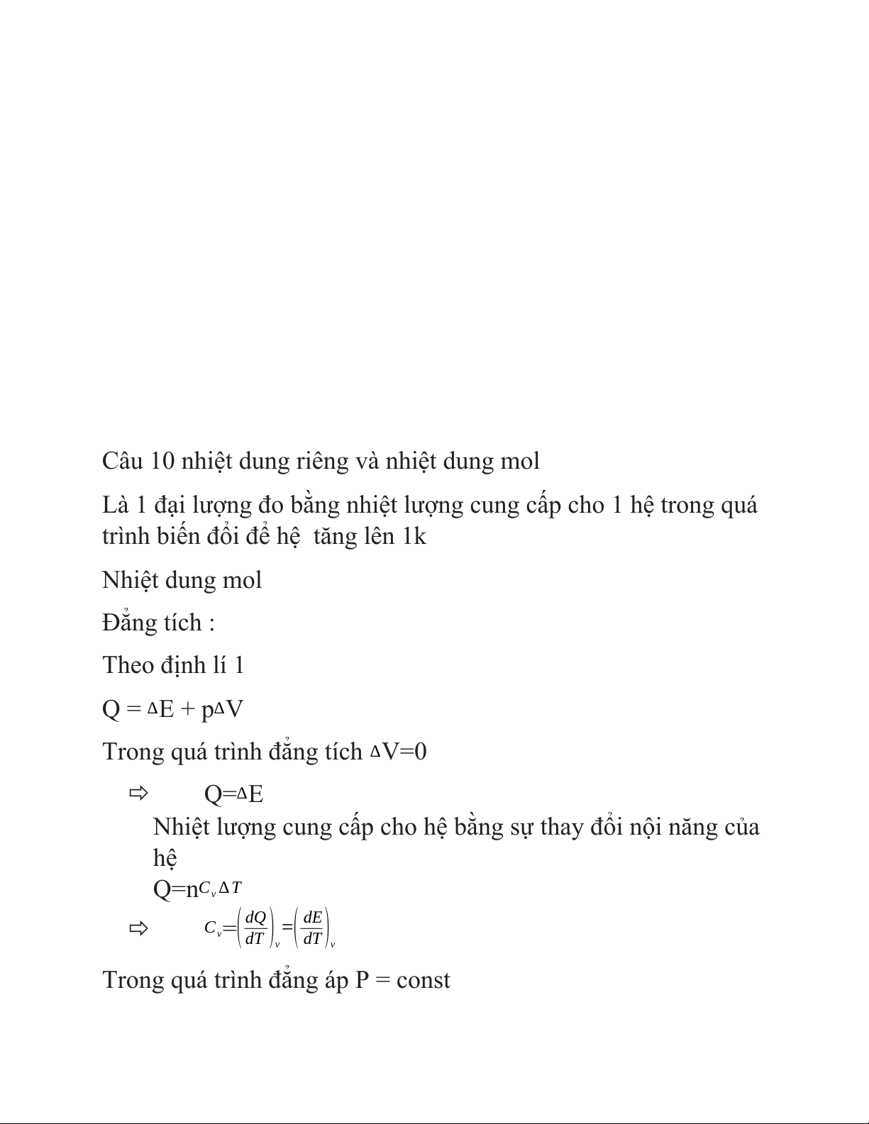 Câu 10 nhiệt dung riêng và nhiệt dung mol