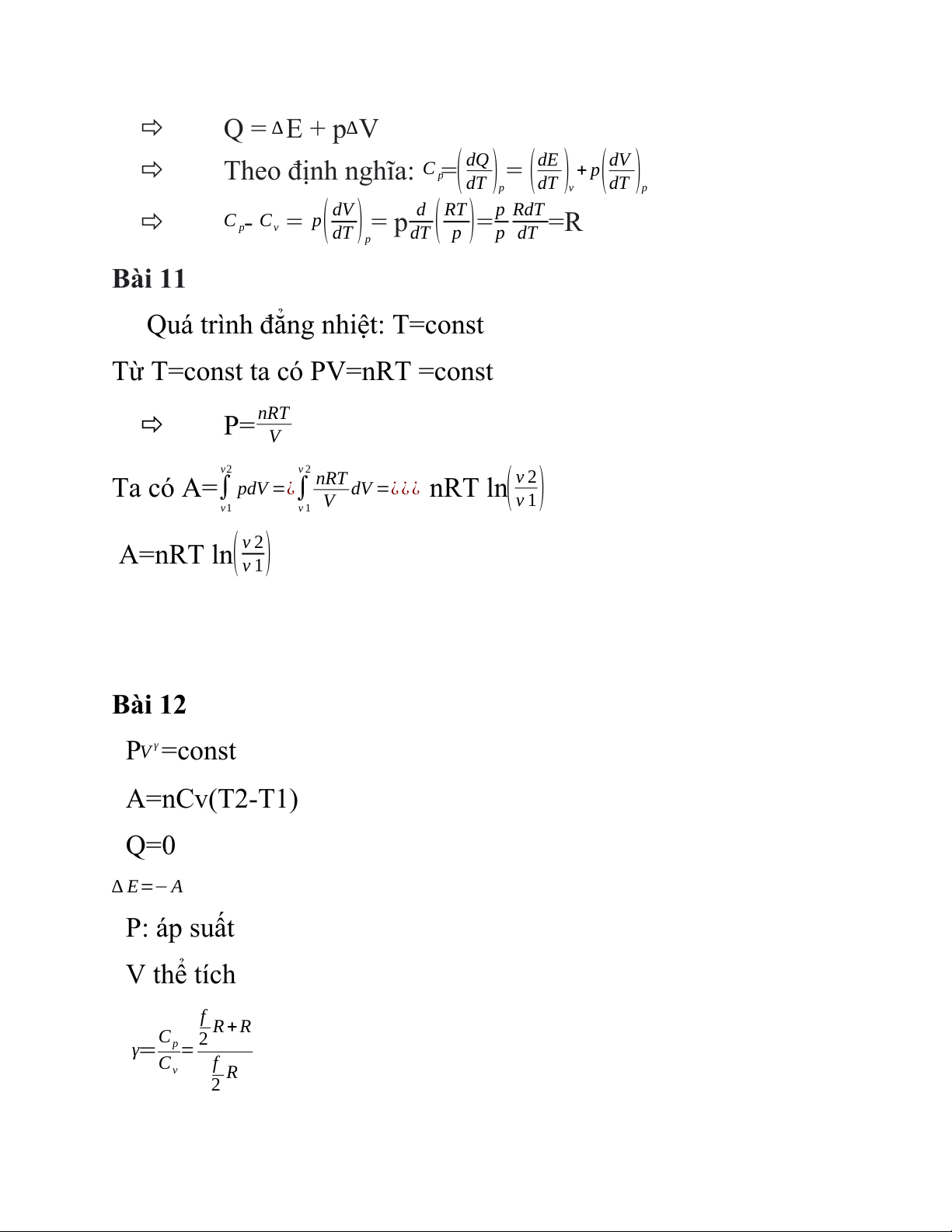 C - C = p(dV ) = p d (RT )=p =R p v dT dT p p dT p Bài 11
