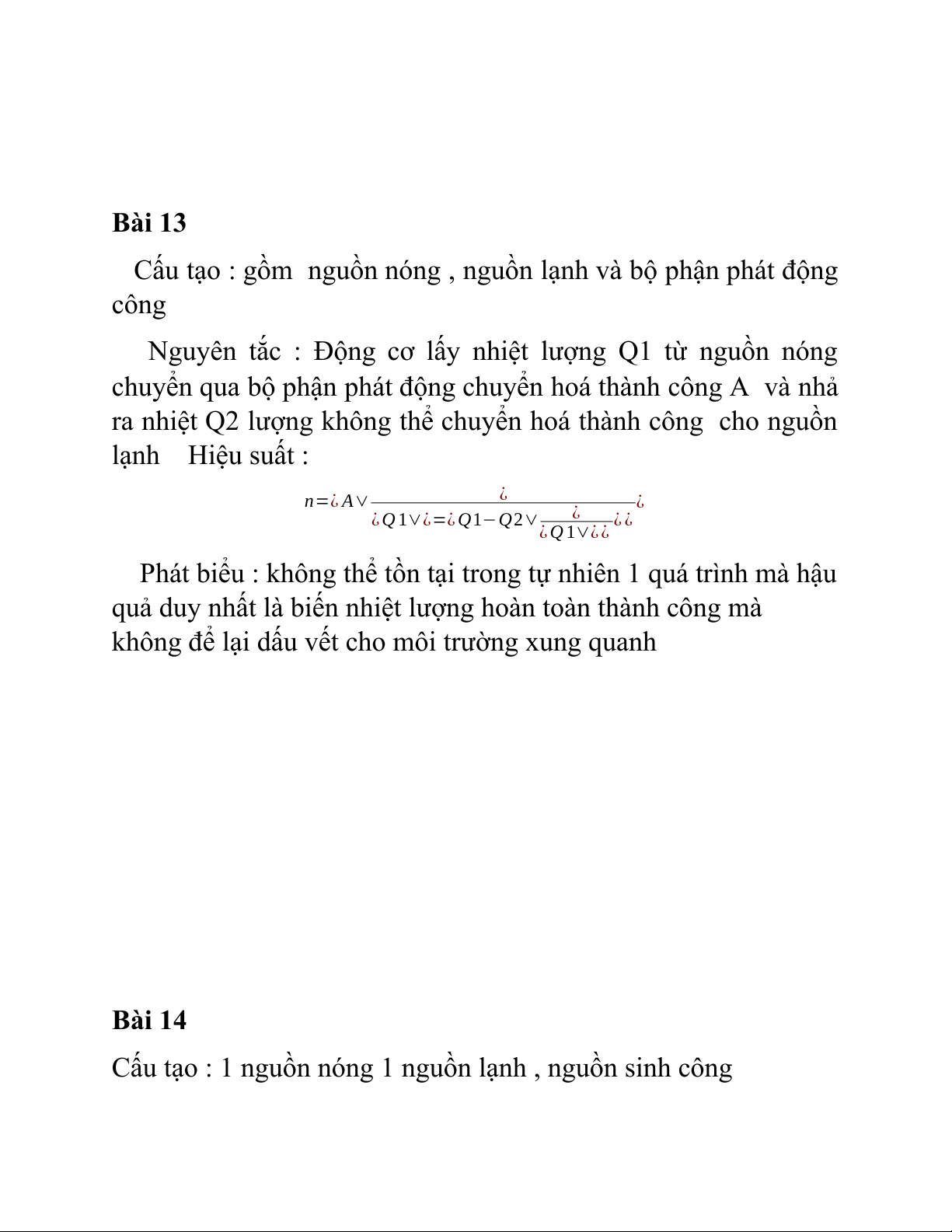 ra nhiệt Q2 lượng không thể chuyển hoá thành công cho nguồn lạnh Hiệu suất : n=¿ A∨ ¿ ¿