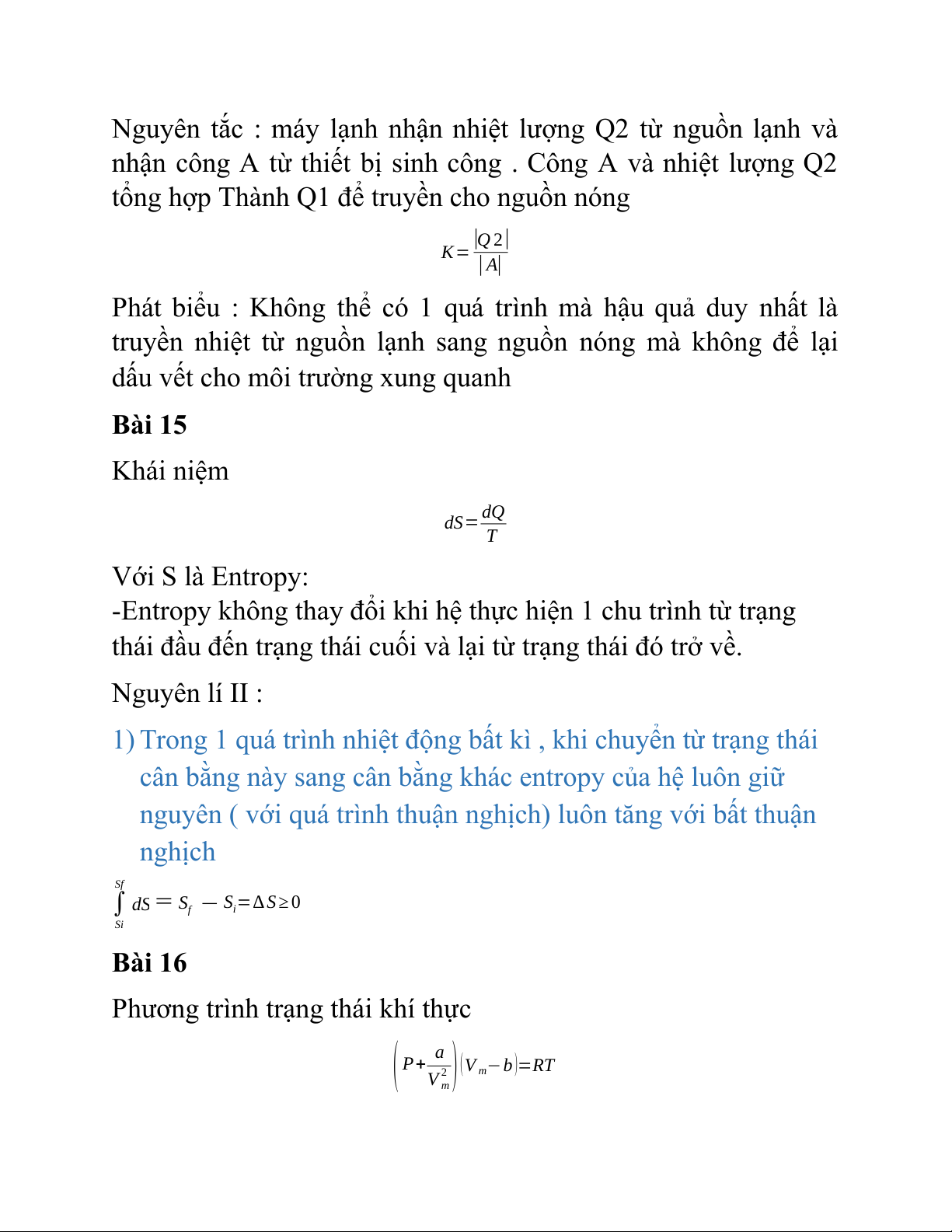 -Entropy không thay đổi khi hệ thực hiện 1 chu trình từ trạng