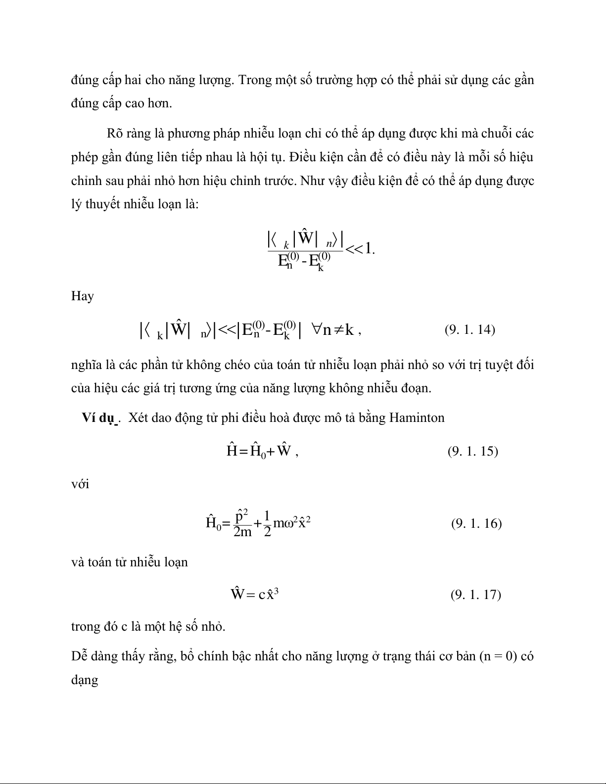 Mỗi trạng thái này ứng với một năng lượng (0) E =E + | ˆ n n n W| n . (9. 1. 11)