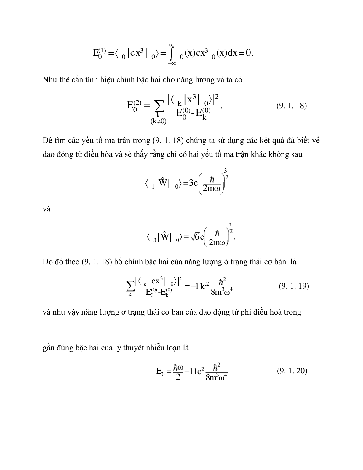 gần đúng bậc hai của lý thuyết nhiễu loạn là 0 E (9. 1. 20) 3 4 2 8m ω