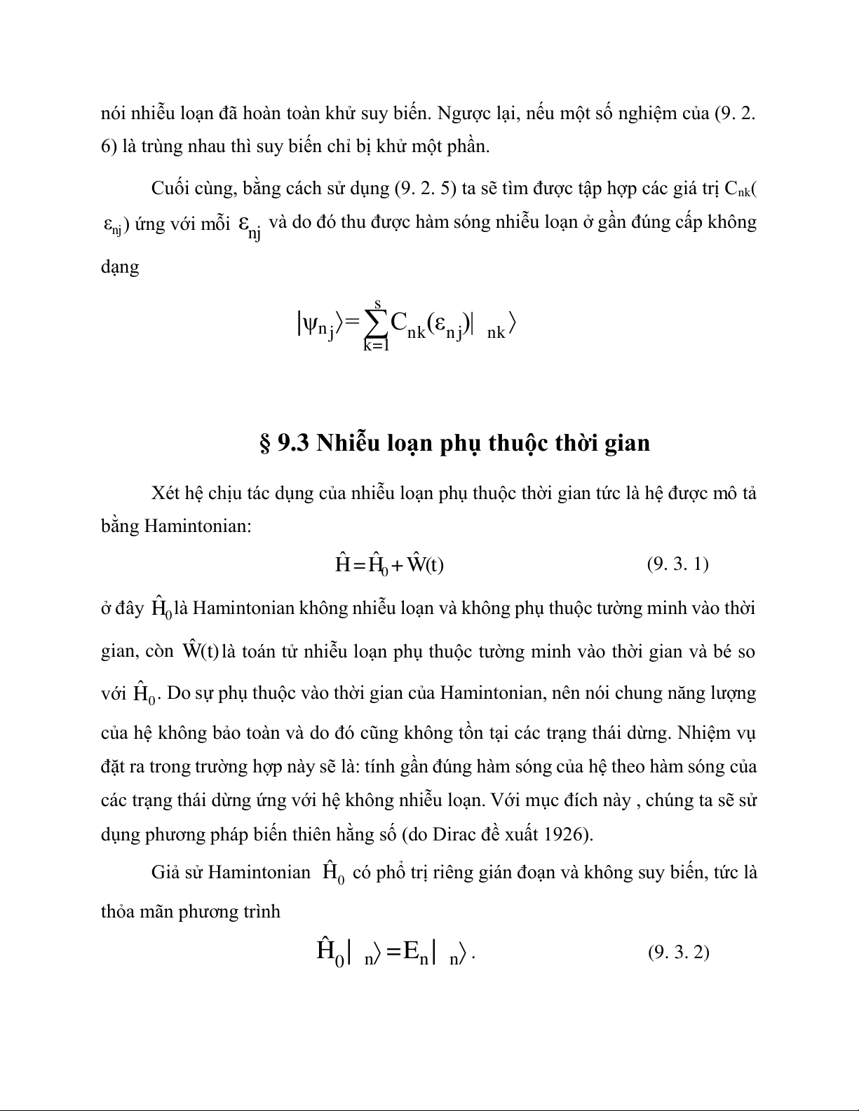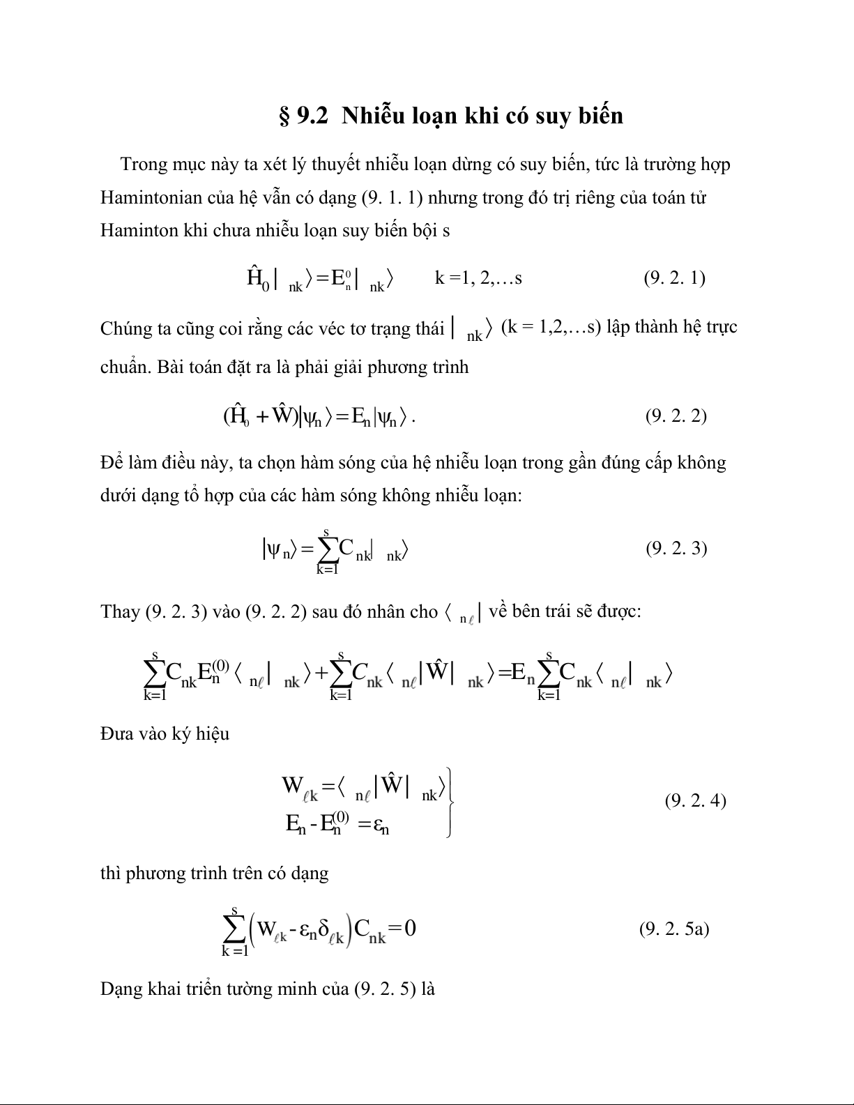 dưới dạng tổ hợp của các hàm sóng không nhiễu loạn: s |ψn Cnk| n k (9. 2. 3) k=1