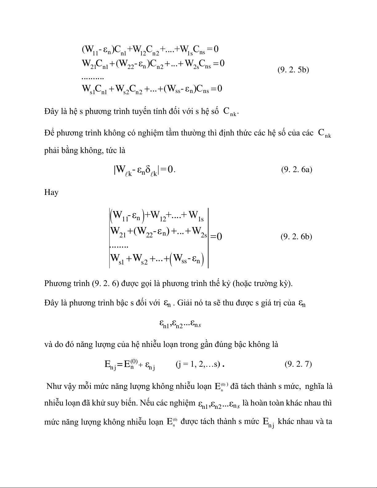 Dạng khai triển tường minh của (9. 2. 5) là (W - 11 εn) n C 1+ 1 W 2 n C 2+....+ 1 W s n C s = 0 W C (W - 21 n1 22 εn)Cn2 ... 2 W s n C s 0 . . . . . (9. 2. 5b) s1 W n C 1 s W 2 n C 2 . .( ss W -εn)Cns 0