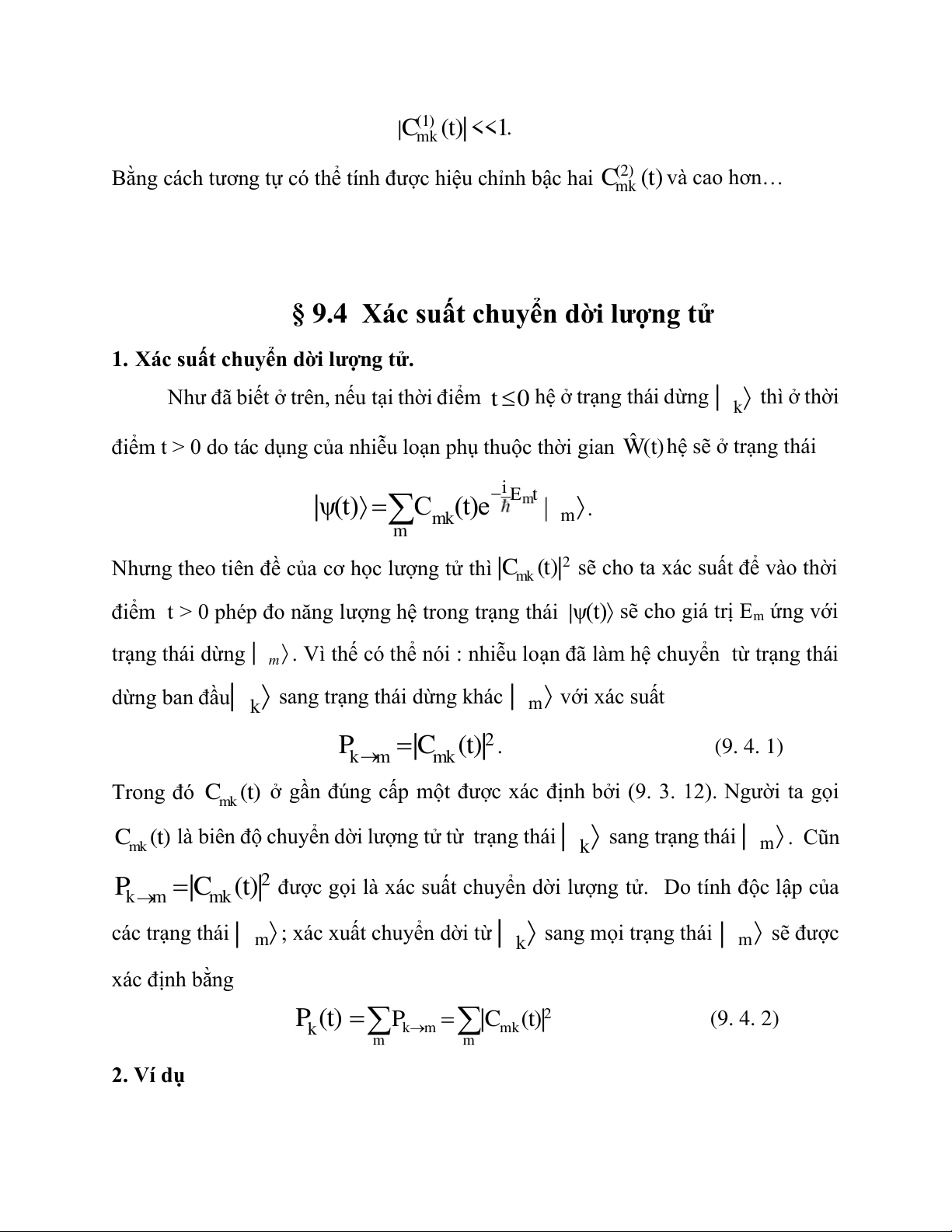 sang trạng thái dừng khác | m với xác suất 2 P |C (t)| k m . (9. 4. 1) mk Trong đó C (t) mk