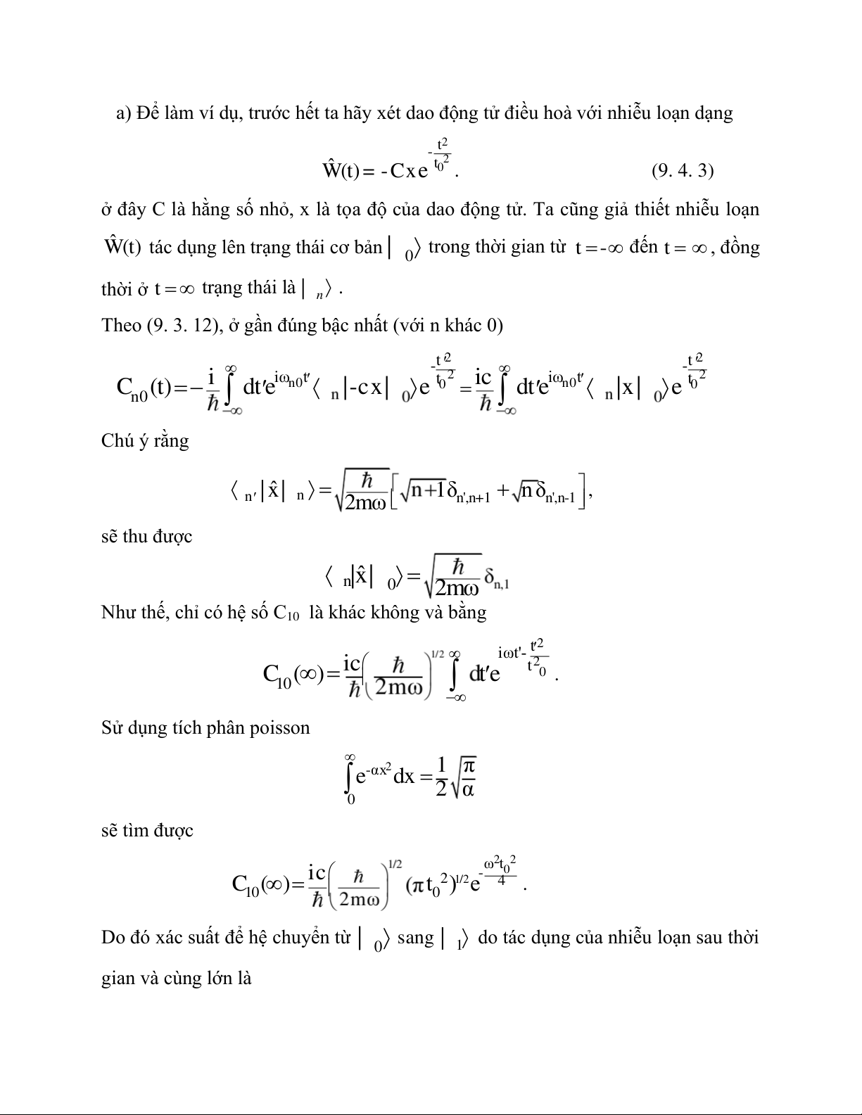 Như thế, chỉ có hệ số C10 là khác không và bằng 2 t iωt'- 2 ic t 0 1 C 0( ) t e .