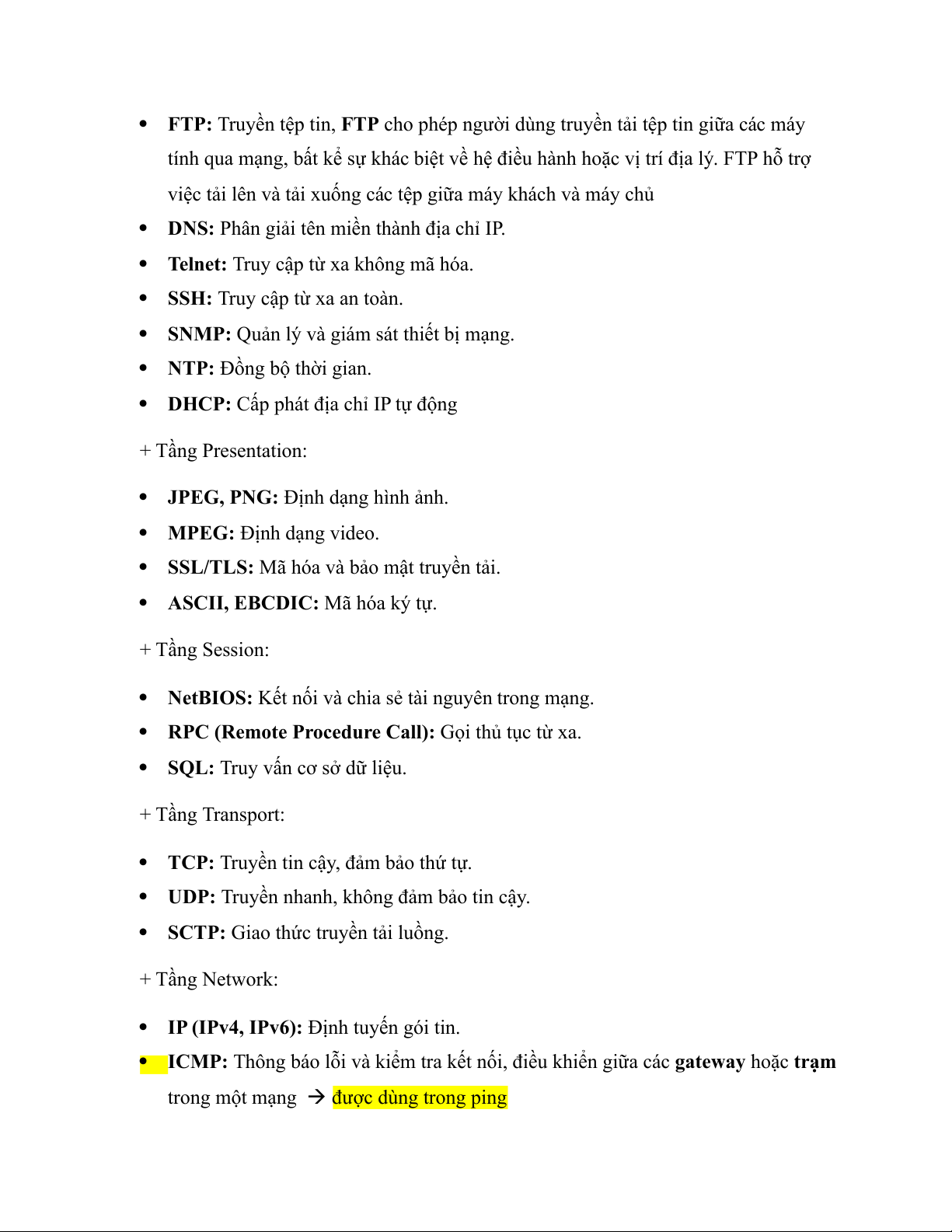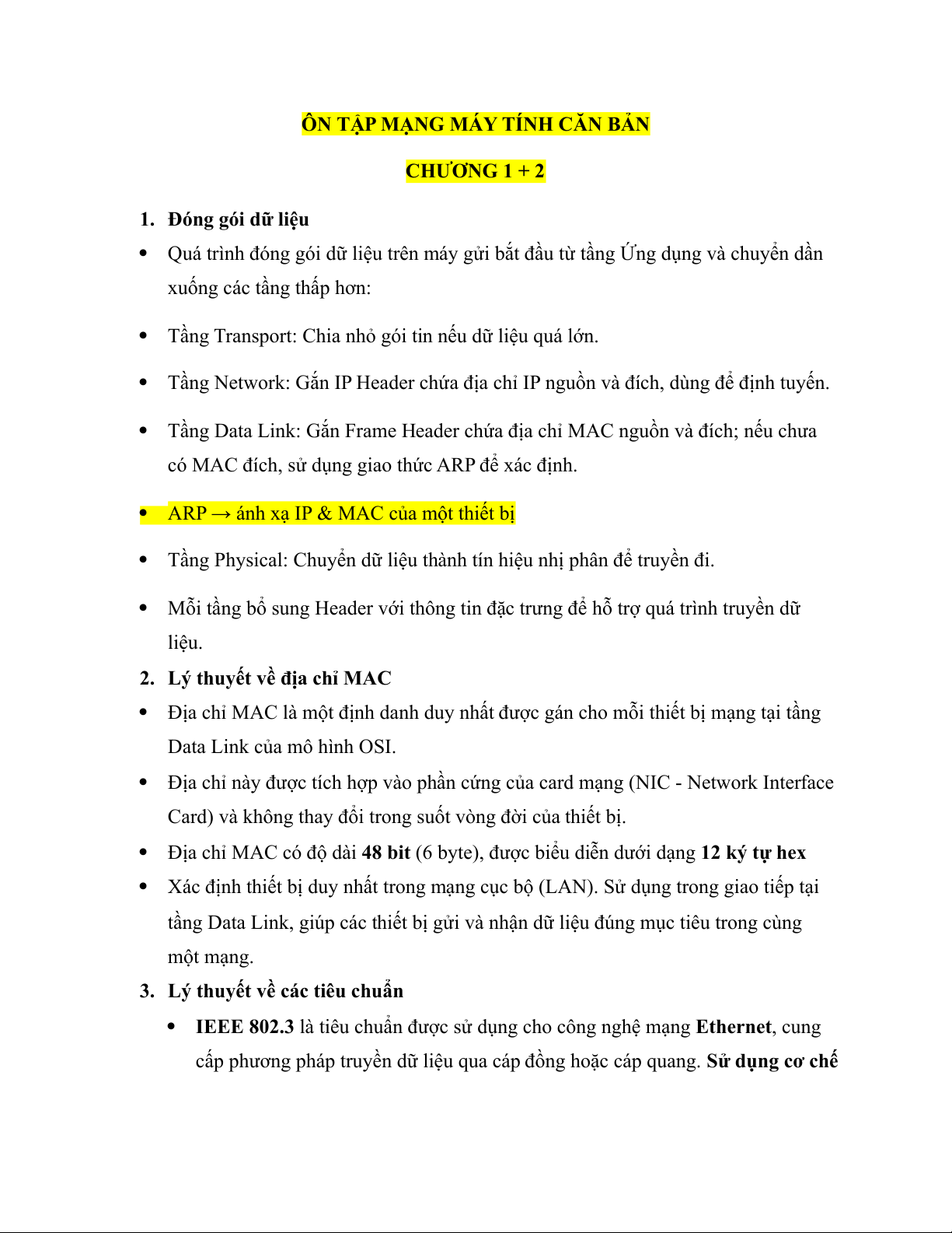 ÔN TẬP MẠNG MÁY TÍNH CĂN BẢN CHƯƠNG 1 + 2