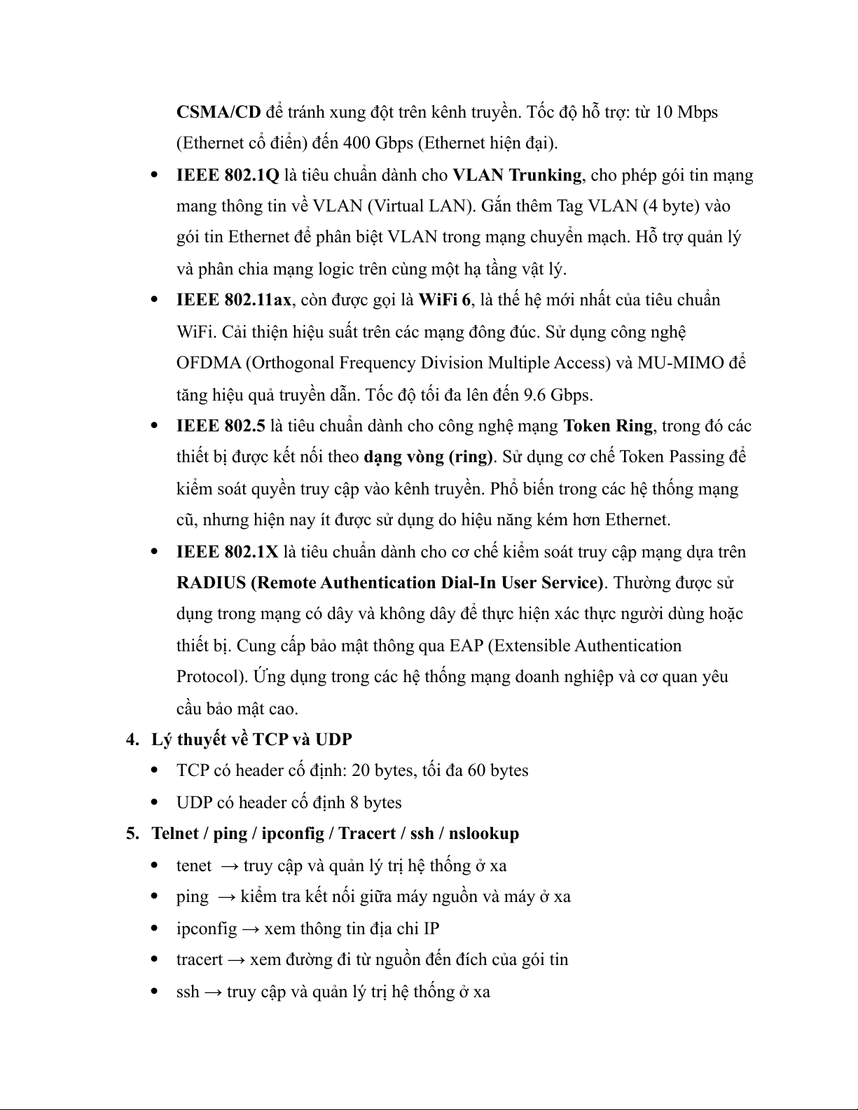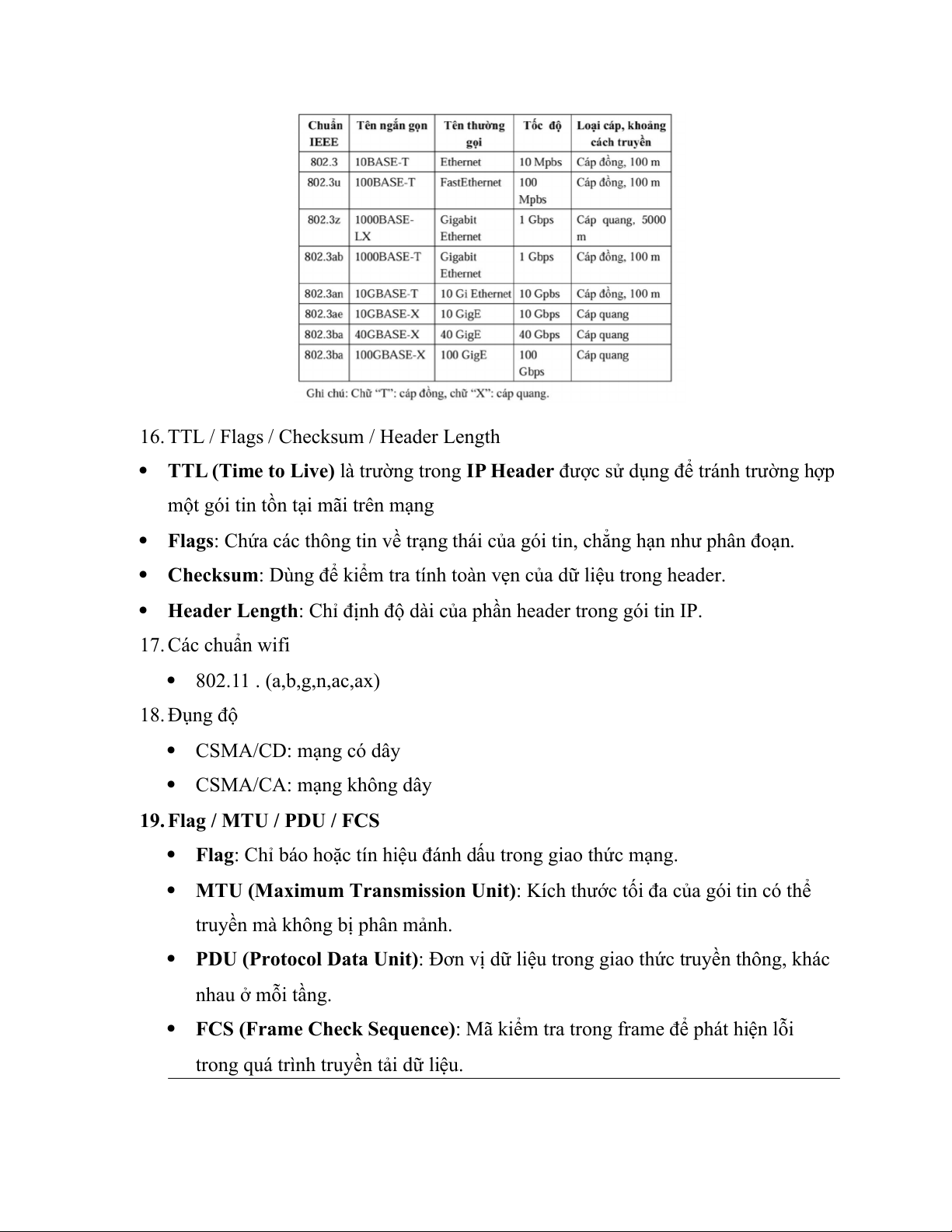 Header Length: Chỉ định độ dài của phần header trong gói tin IP. 17. Các chuẩn wifi 802.11 . (a,b,g,n,ac,ax) 18. Đụng độ CSMA/CD: mạng có dây