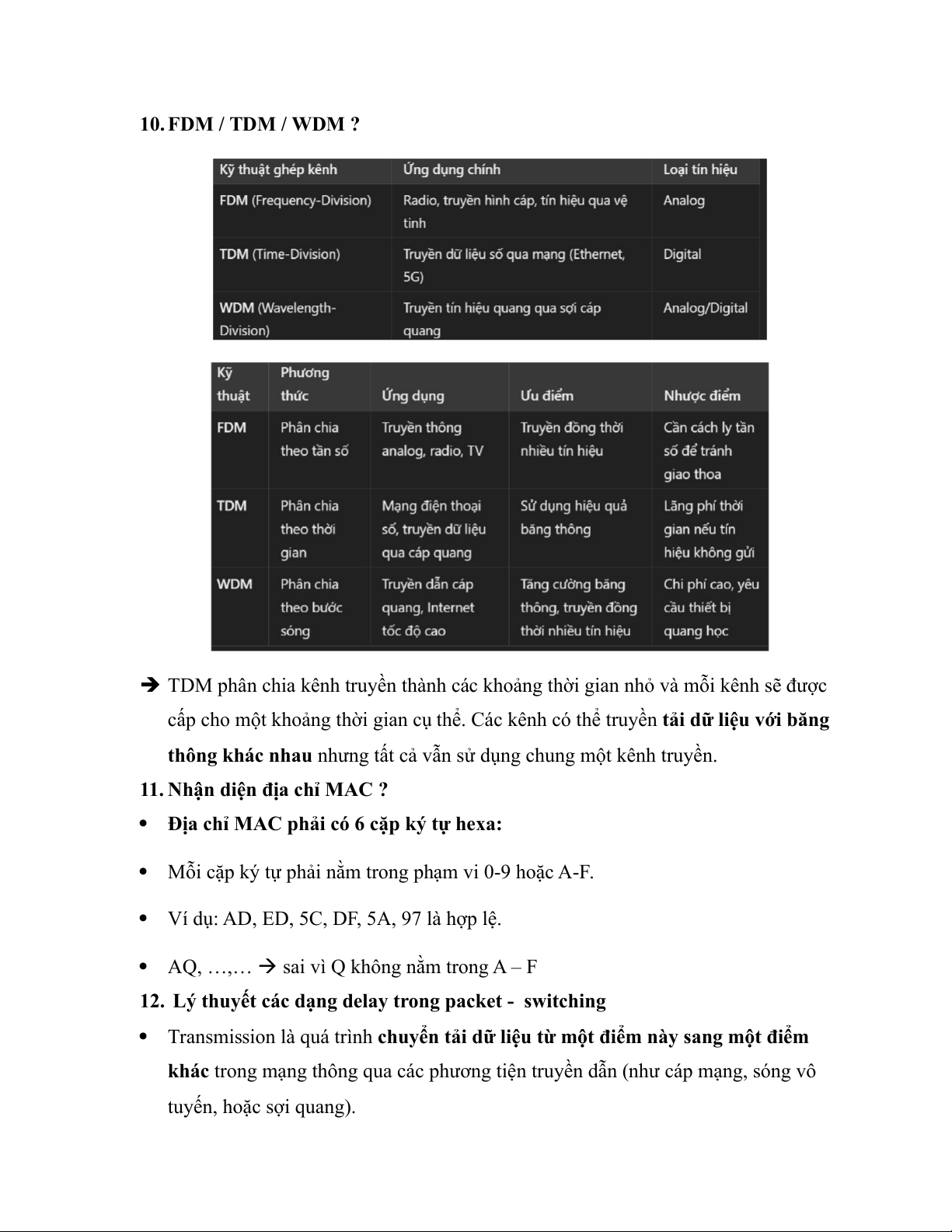 Tầng App: Email, FTP, Web,… 10. FDM / TDM / WDM ?