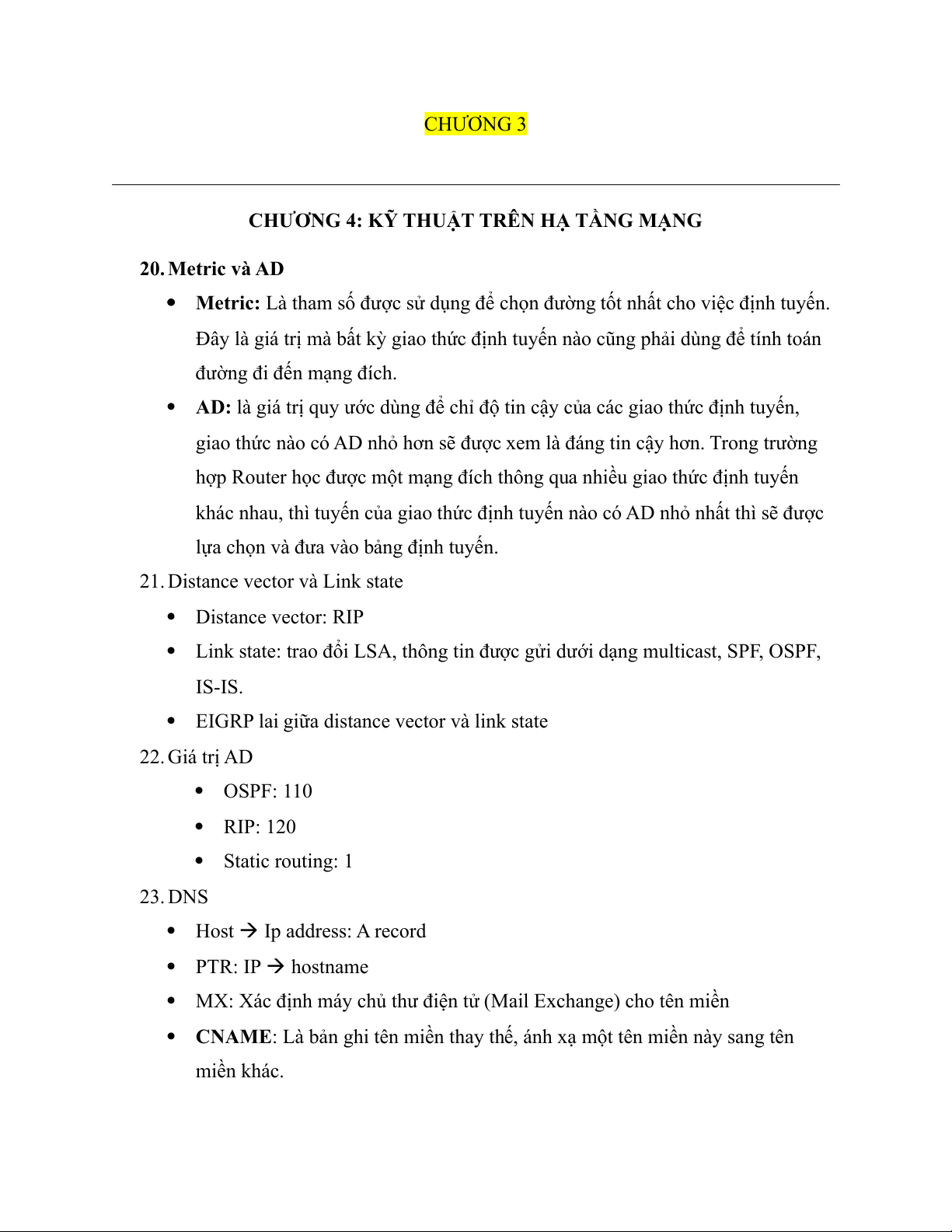 EIGRP lai giữa distance vector và link state 22. Giá trị AD OSPF: 110 RIP: 120 Static routing: 1 23. DNS