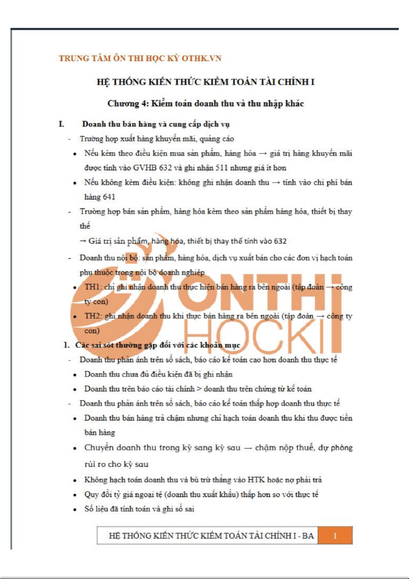 Lý thuyết ôn thi học kỳ môn Kiểm toán | Học viện Ngân hàng