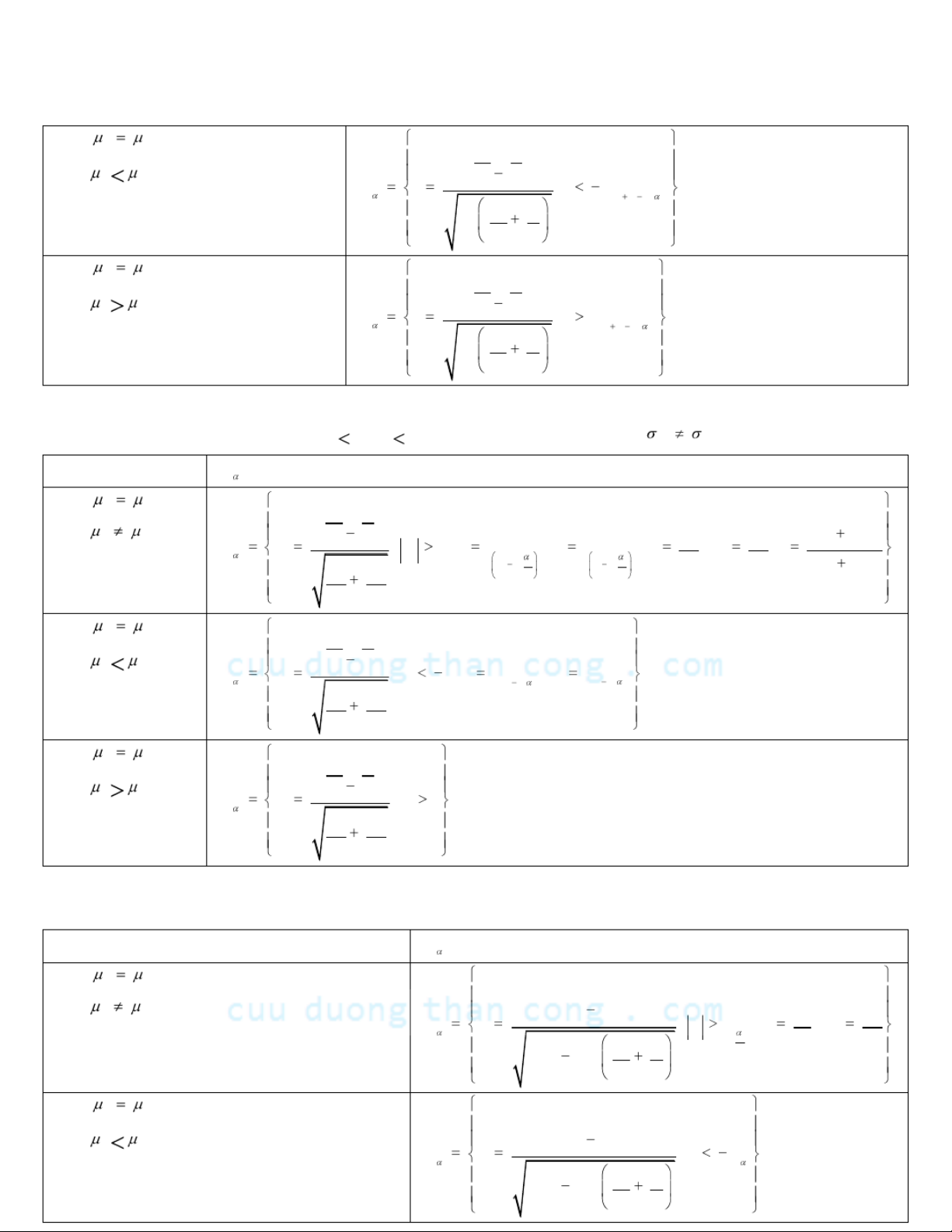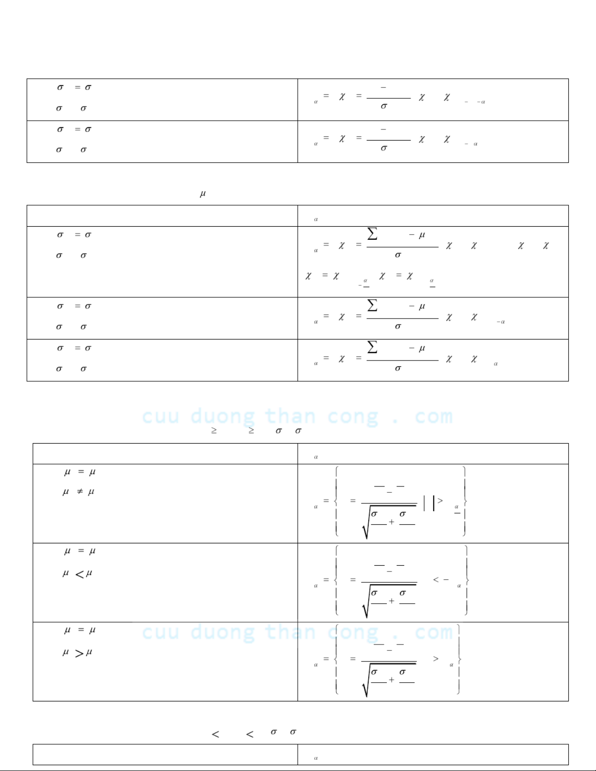 CuuDuongThanCong.com https://fb.com/tailieudientucntt H : 0 1 2 H : XY 1 1 2 W u ; u u 22 2 12 mn H : 0 1 2 H : XY 11 2 W u ; u u 22 12 mn H : 0 1 2 H : XY 11 2 W u ; u u 22 12 mn 1.2.4.1.3. TH3: 22 mn 3 0 , 3 0 , , không biết 12 GTTK W H : 0 1 2 H : XY 1 1 2 W u ; u u 22 ss 2 12 mn H : 0 1 2 H : XY 11 2 W u ; u u 22 ss 12 mn H : 0 1 2 H : XY 11 2 W u ; u u 22 ss 12 mn