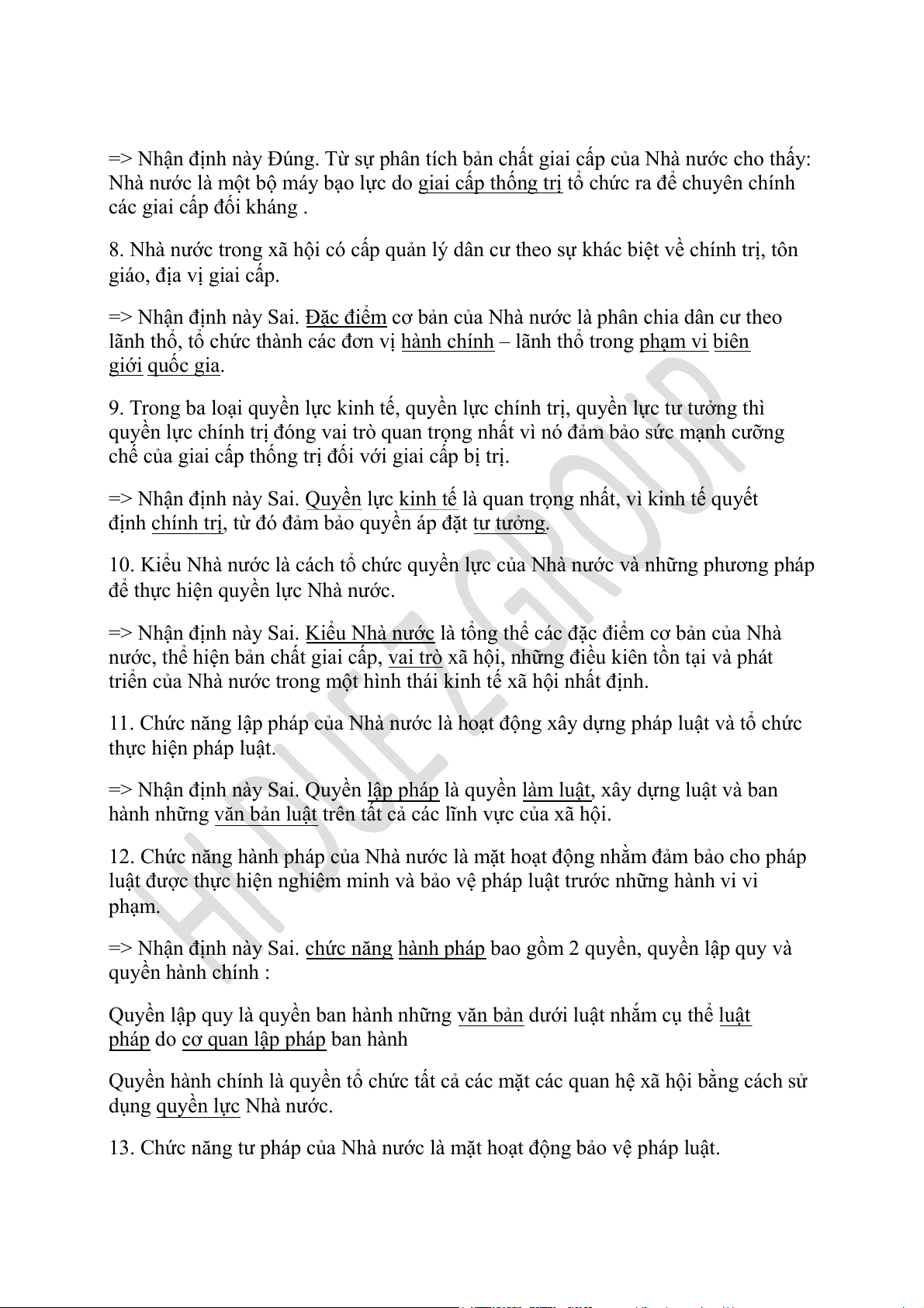 10. Kiểu Nhà nước là cách tổ chức quyền lực của Nhà nước và những phương pháp để t ự