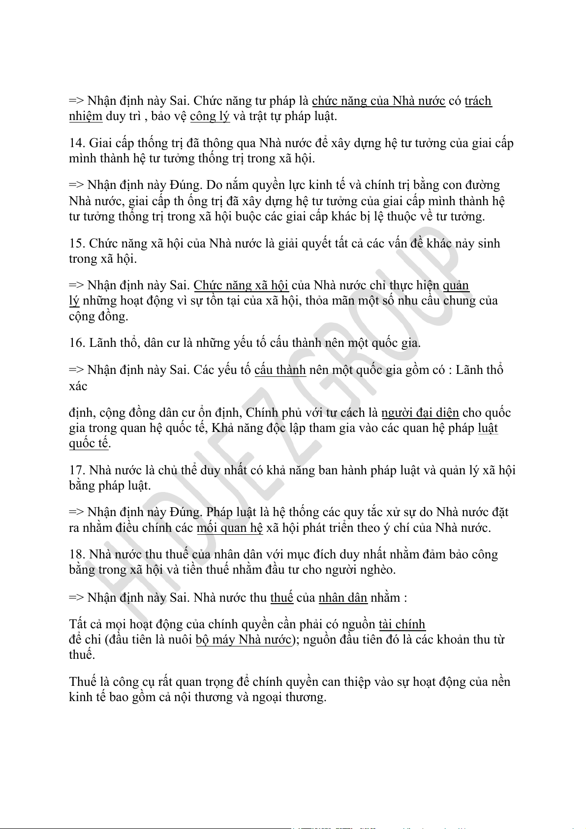 15. Chức năng xã hội của Nhà nước là giải quyết tất cả các vấn đề khác nảy sinh trong xã hội.