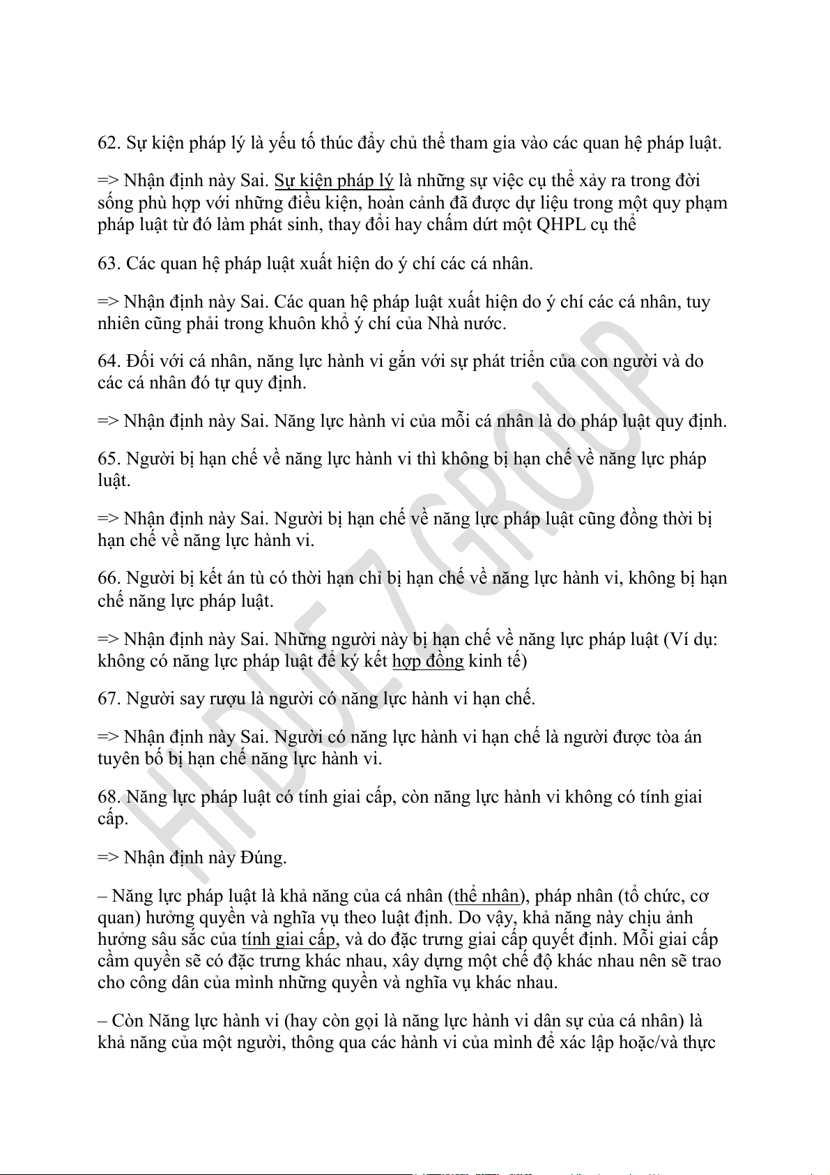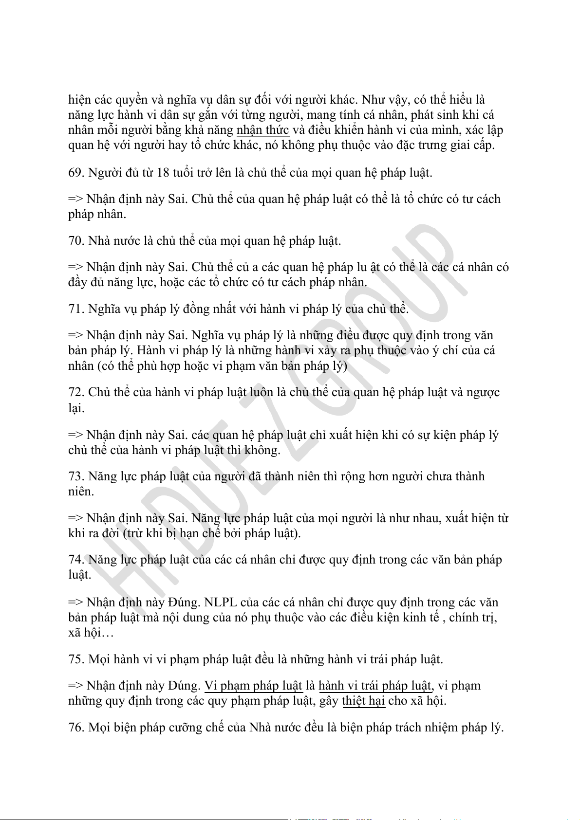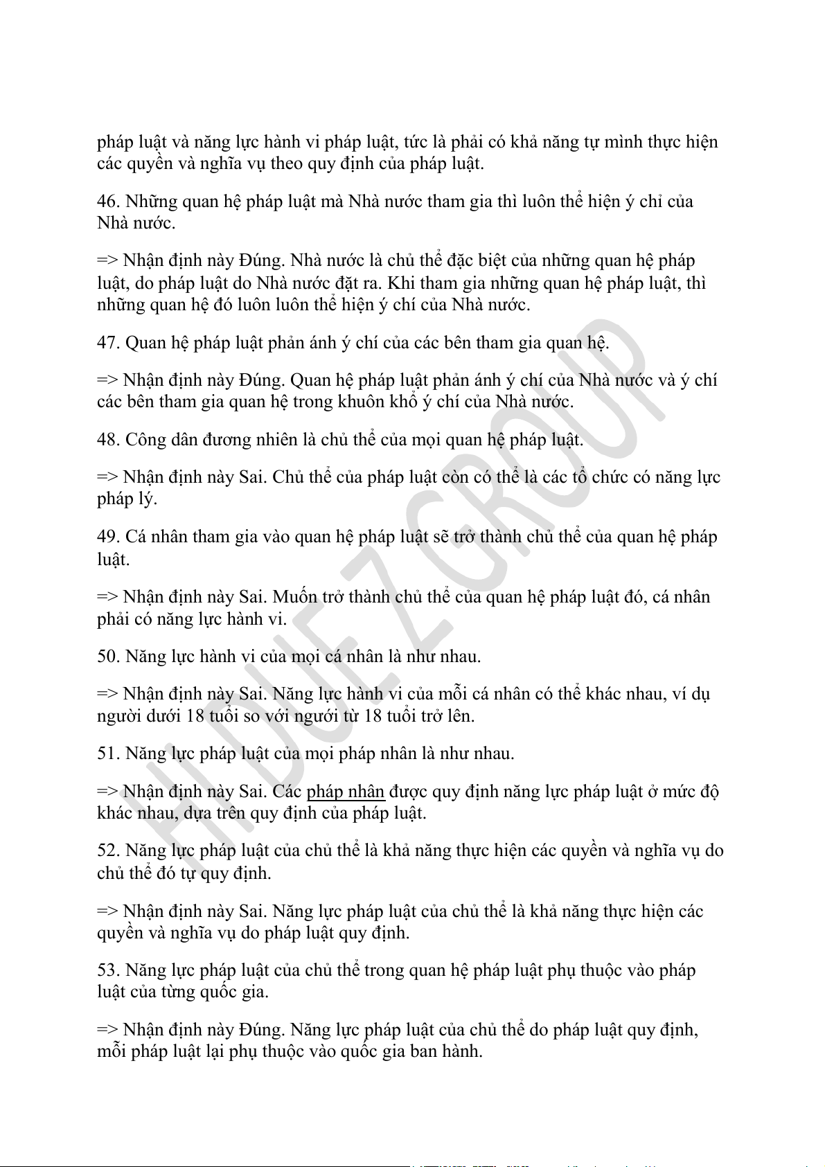 102 Câu lý thuyết đúng sai Pháp Luật Đại Cương
