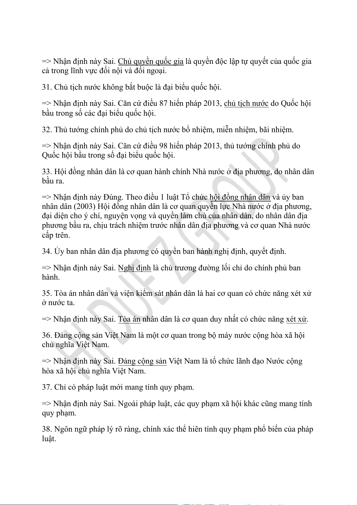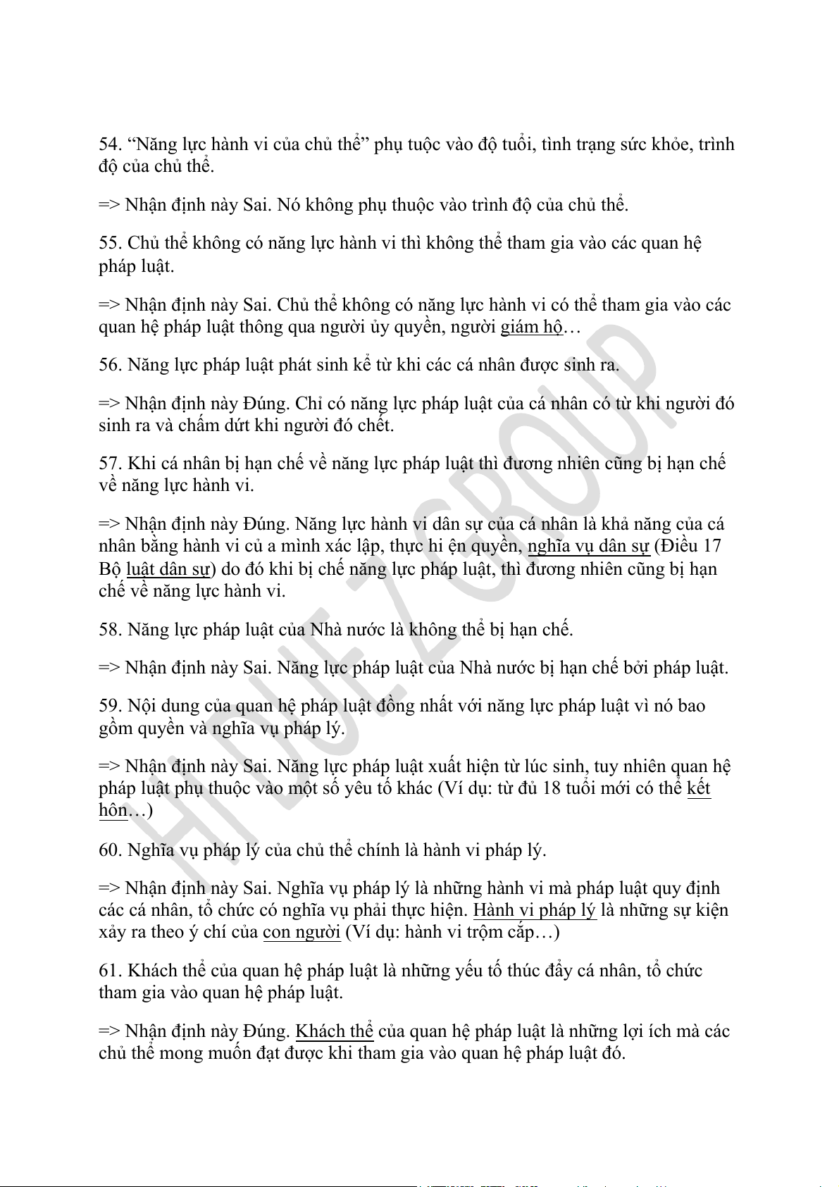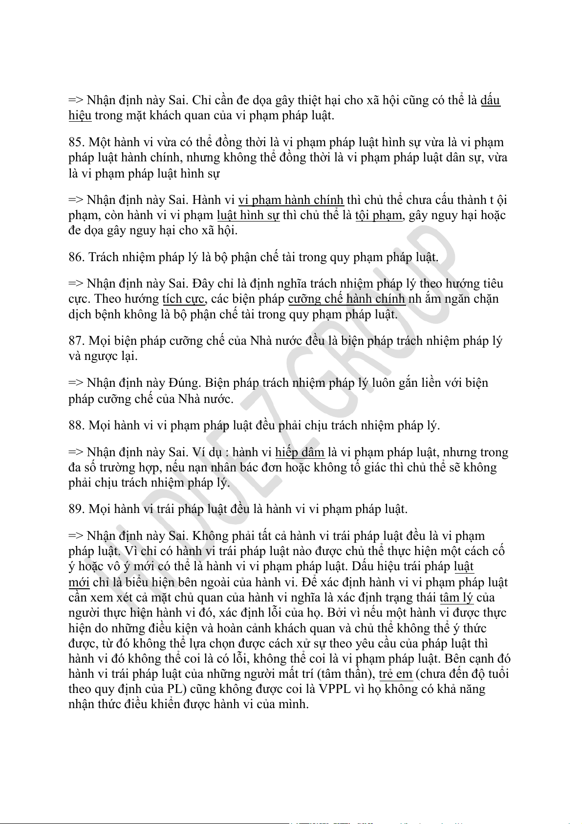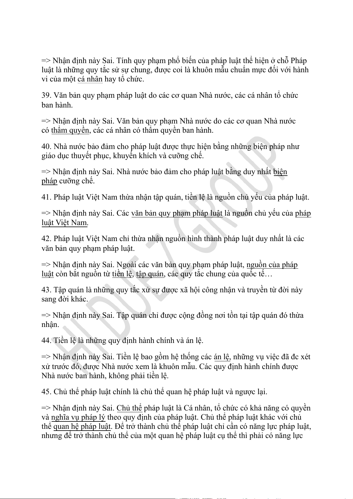 102 Câu lý thuyết đúng sai Pháp Luật Đại Cương