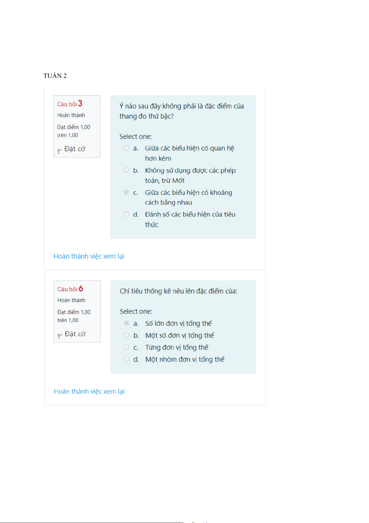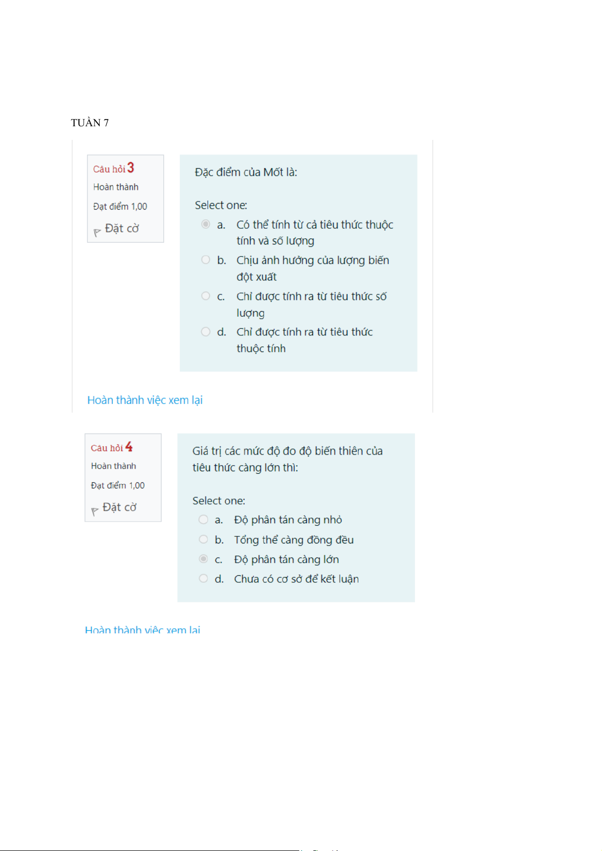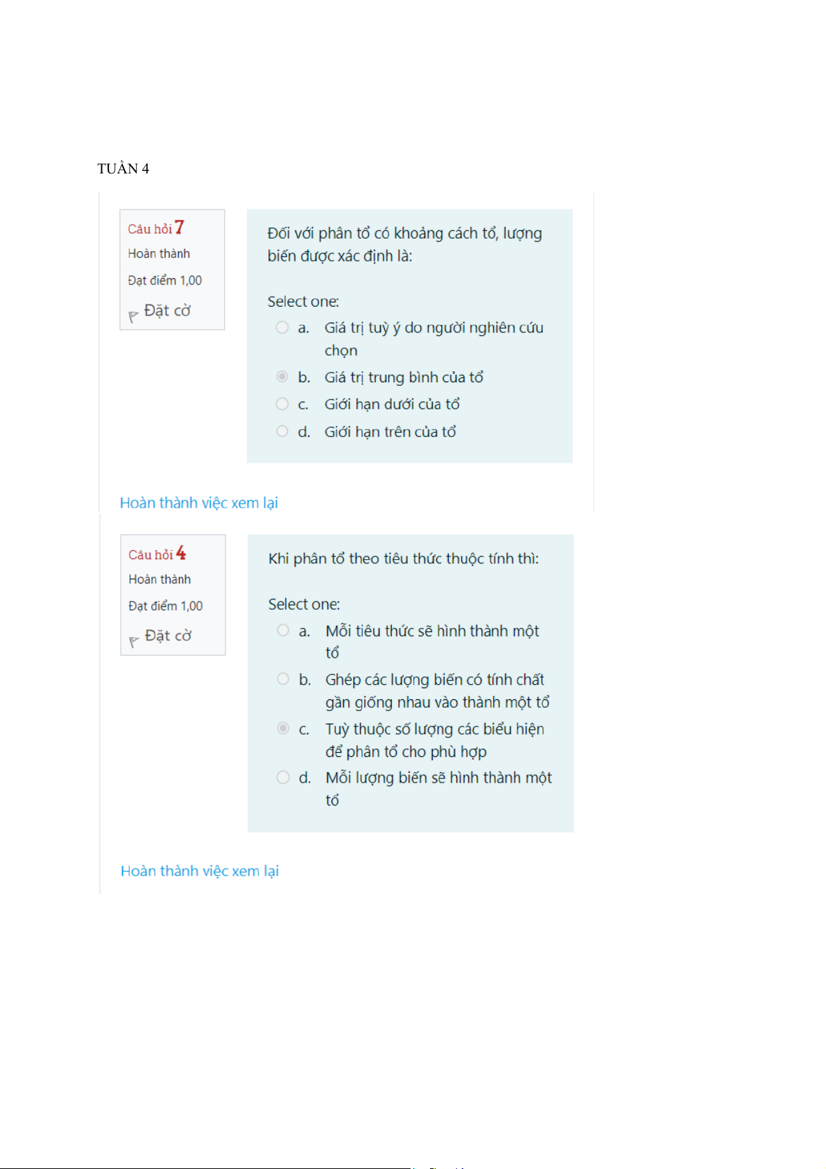 Lý Thuyết Thống Kê - Tuần 2 Đến Tuần 7 Tổng Hợp Câu Hỏi | Thống kê trong kinh tế và kinh doanh | Trường Đại học Kinh tế Quốc dân
