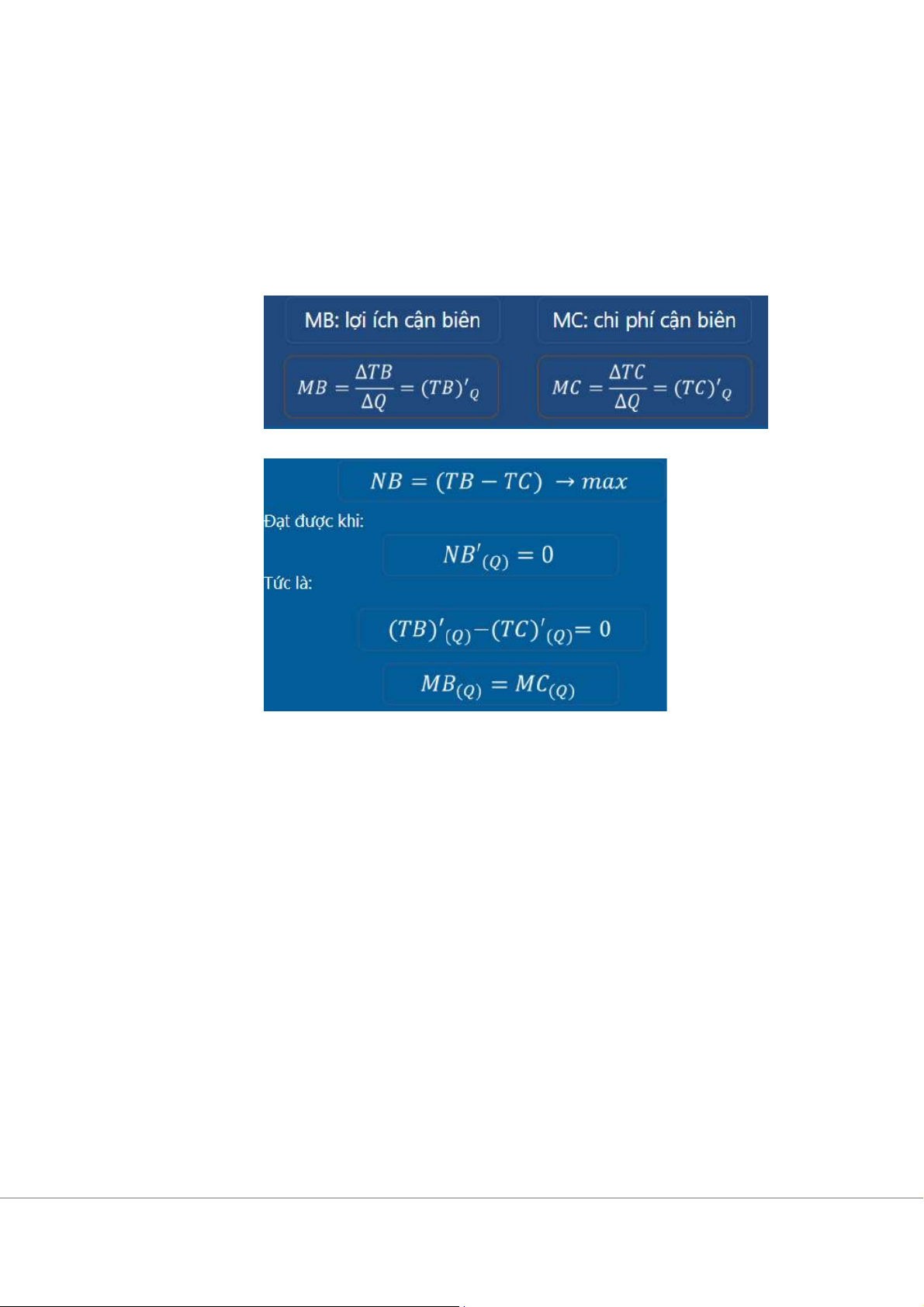 o Người ta quyết định bằng cách so sánh lợi ích và chi phí tại điểm cận biên