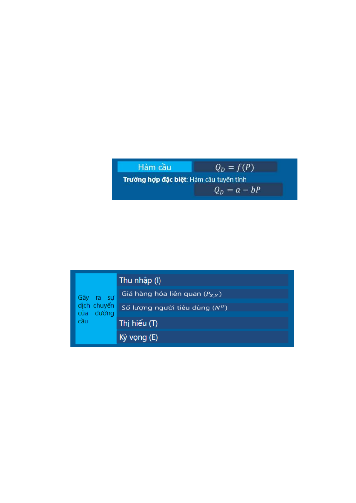 lượng cầu, cầu biểu hiện giữa giá và lượng cầu ➔ đường cầu - Hàm cầu: