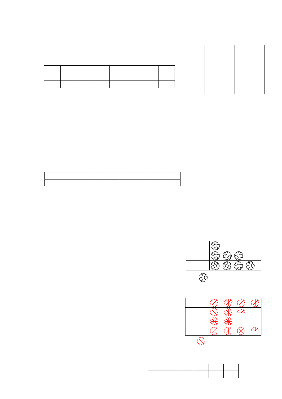 Bóng đá Cầu lông Cờ vua Bóng bàn Số học sinh Nam 20 15 10 17 ? 20 ? Nữ 5 6 12 9 ? Nam 15 ? ? ?