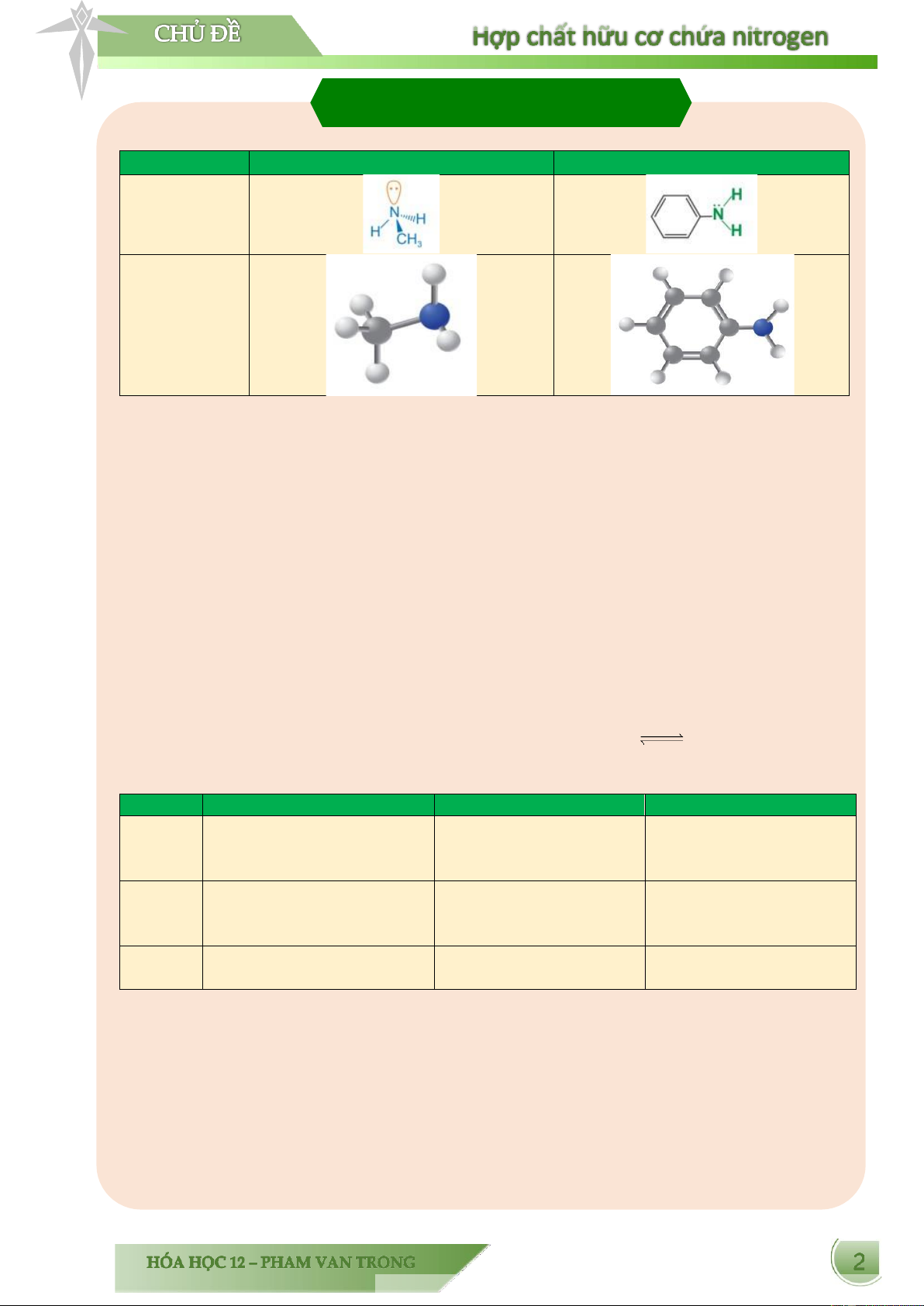 II. Đặc điểm cấu tạo Methylamine (CH3NH2) Aniline (C6H5NH2) Cấu trúc phân tử Mô hình phân tử
