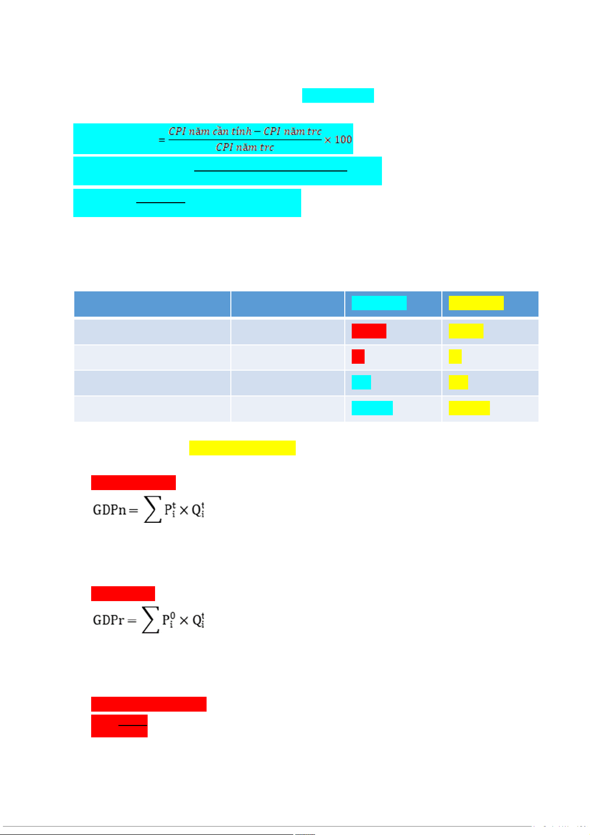 𝐷 = 𝐺𝐷𝑃𝑛 *100 (%) 𝐺𝐷𝑃𝑟 D năm 2015=100(%) D năm 2020= 152 (%) chỉ số giá CPI
