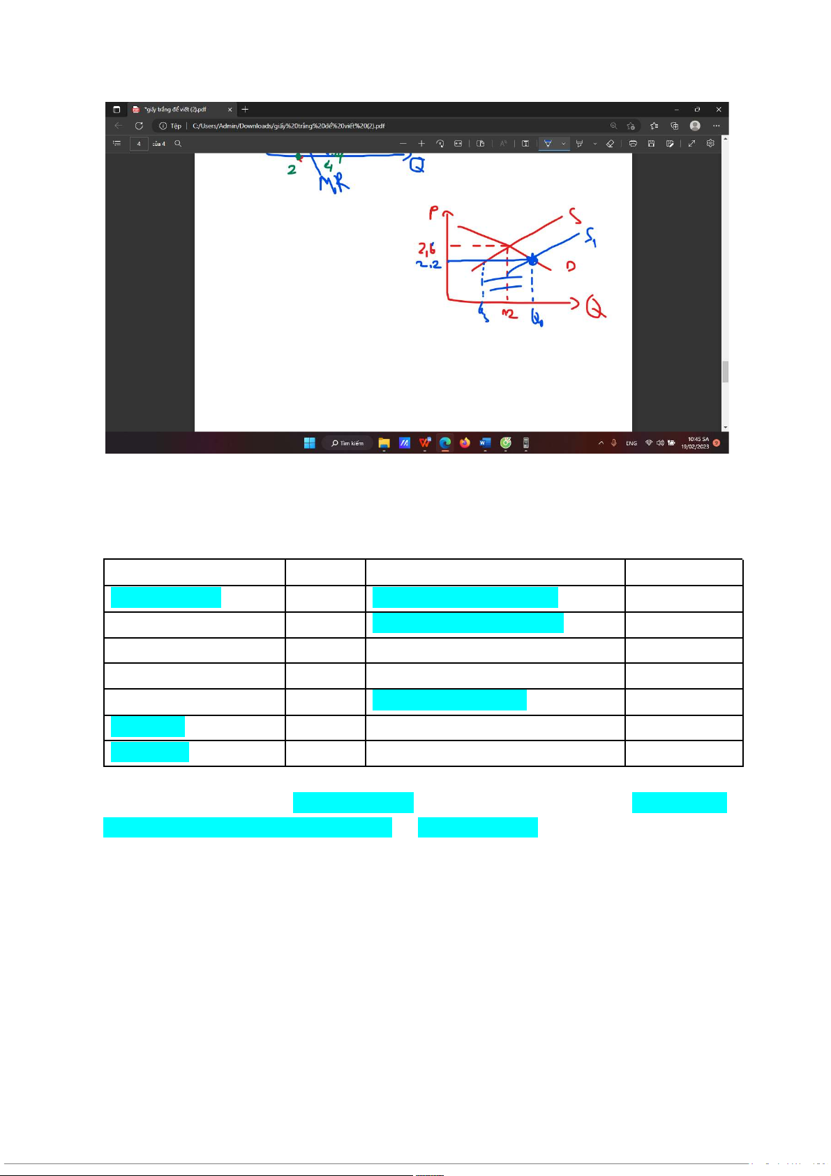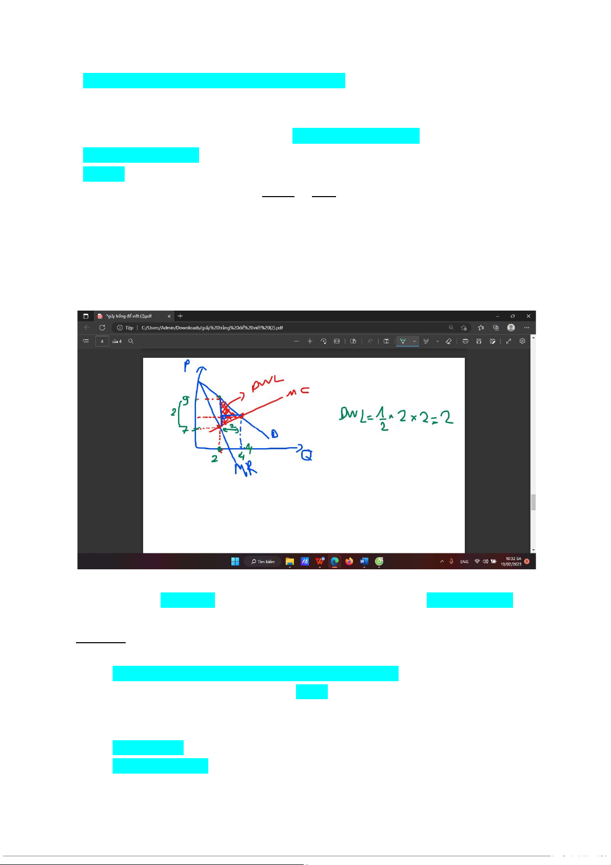 Ta có tối đa hóa LN khi: MR=MC <=> 11-2Q=7 => Q=2 => P=9 LN=TR-TC=9*2-7*2=4 CHỉ số Lerner 𝐿 = 𝑃−𝑀 𝑃 𝐶 =9−7 9= 0, 2