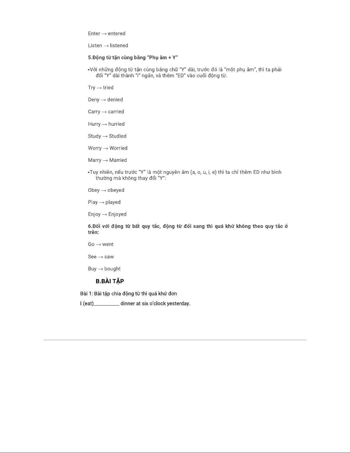 Lý Thuyết và Bài Tập Thì QKĐ (Past Simple Tense) - Tiếng Anh