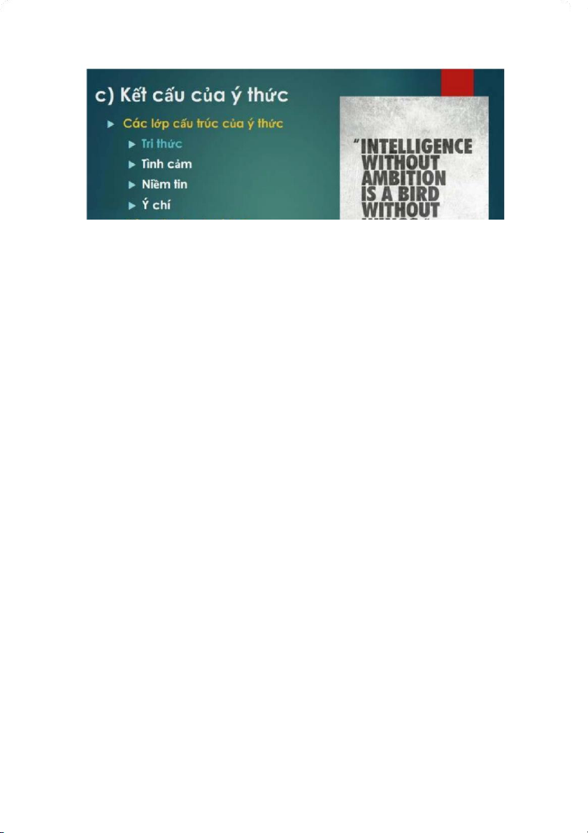 Bản chất của ý thức là sự phản ảnh vật chất Kết cấu của ý thức: lOMoAR cPSD| 61301459