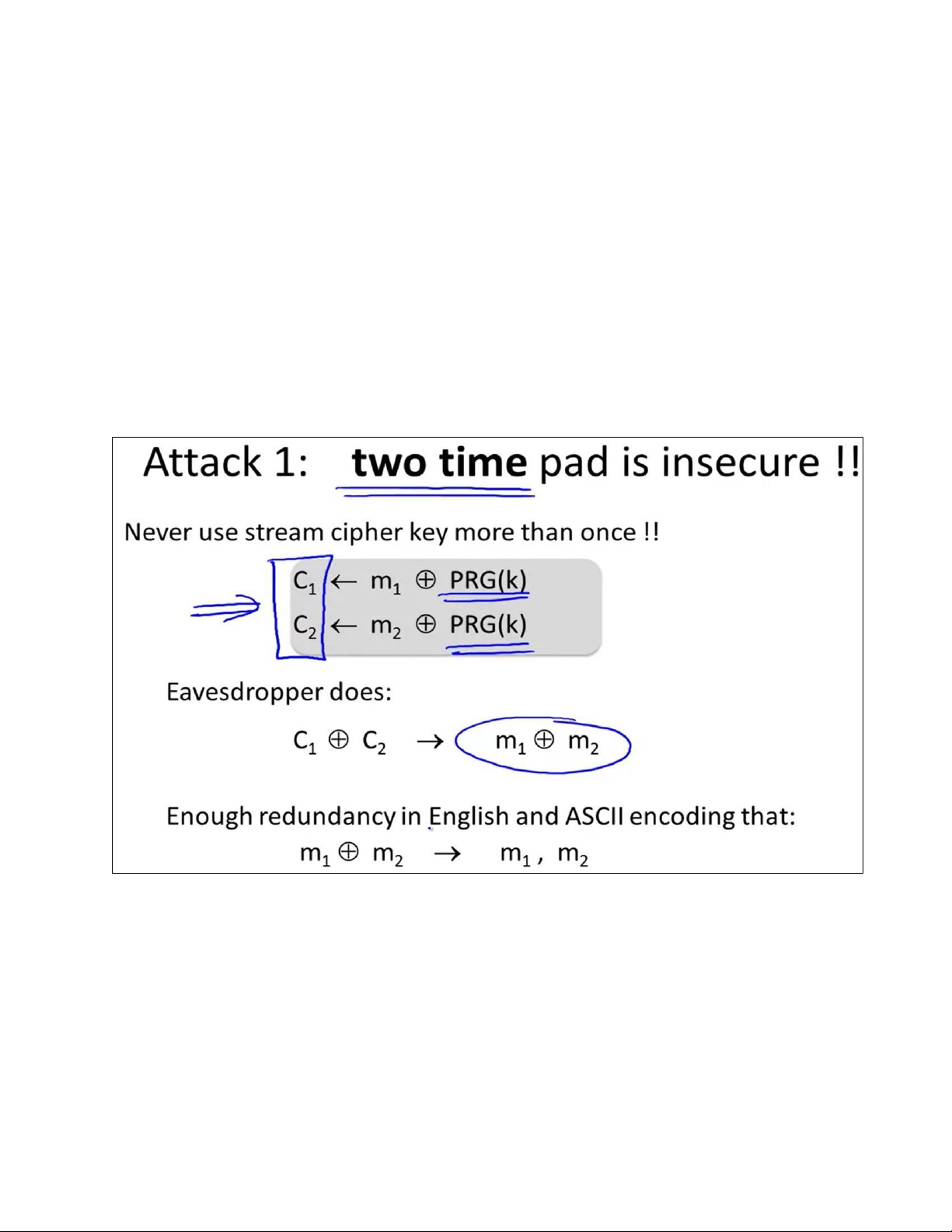 (two-time pad), kẻ tấn công có thể dễ dàng khôi phục lại các thông iệp mà không tốn quá nhiều công sức.