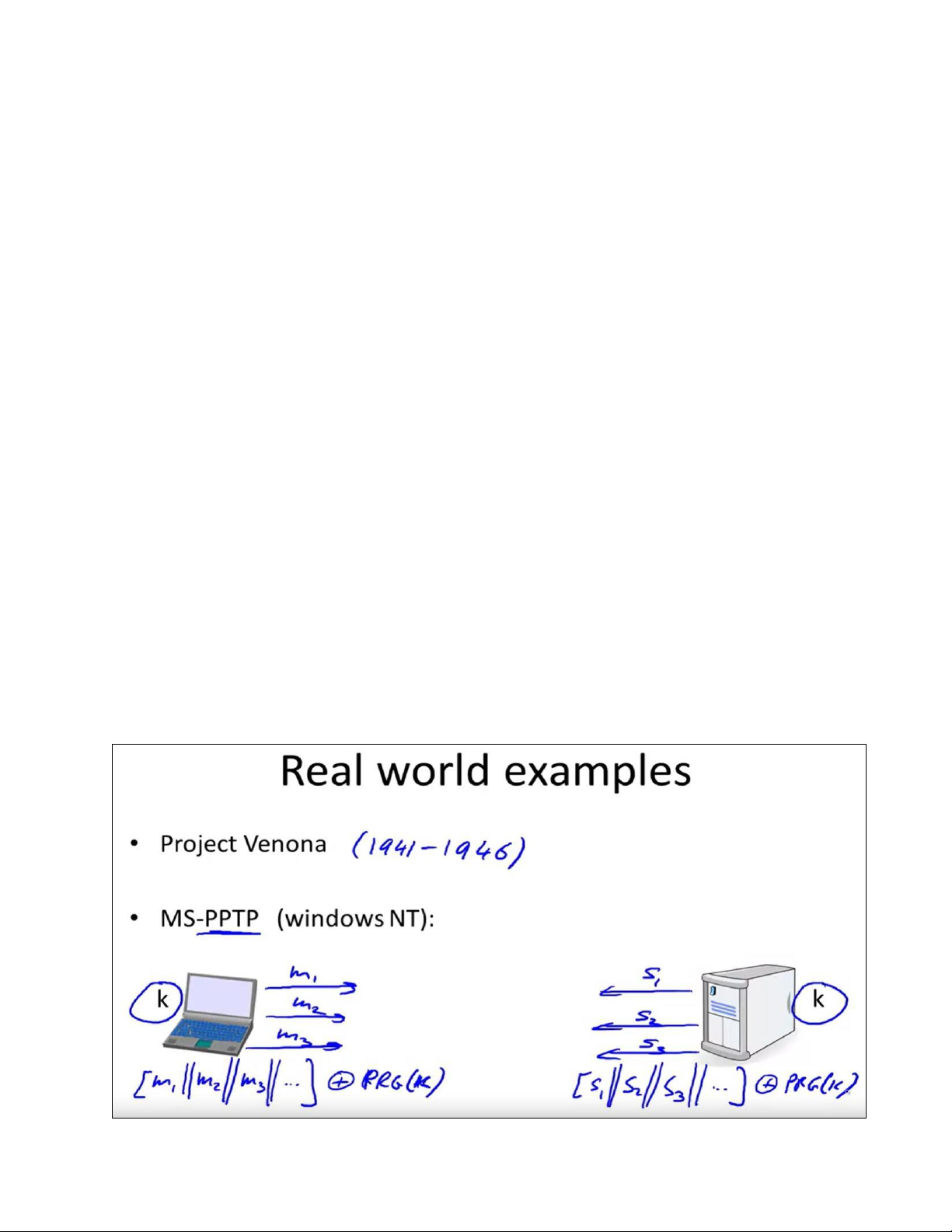 không còn dựa vào "bảo mật tuyệt ối" nữa, vì hệ mã dòng không thể hoàn toàn an toàn.